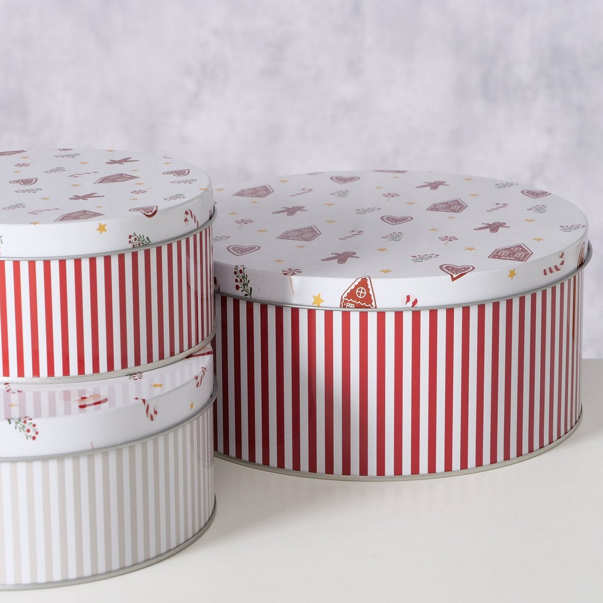 Storage canister Nollaig, 3 p., Set 3, H 6-9 cm, D 13,5-20 cm, Iron, Motif, Multi-coloured, Striped, All-round printing
