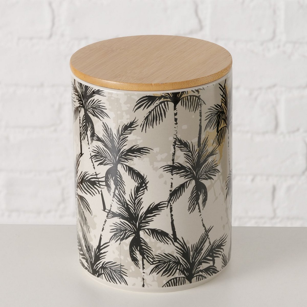 Storage canister Palma, 2 p., Set 2, H 16-19 cm, D 12-14 cm, Bamboo (Phyllostachys edulis), Earthenware, Multi-coloured,
