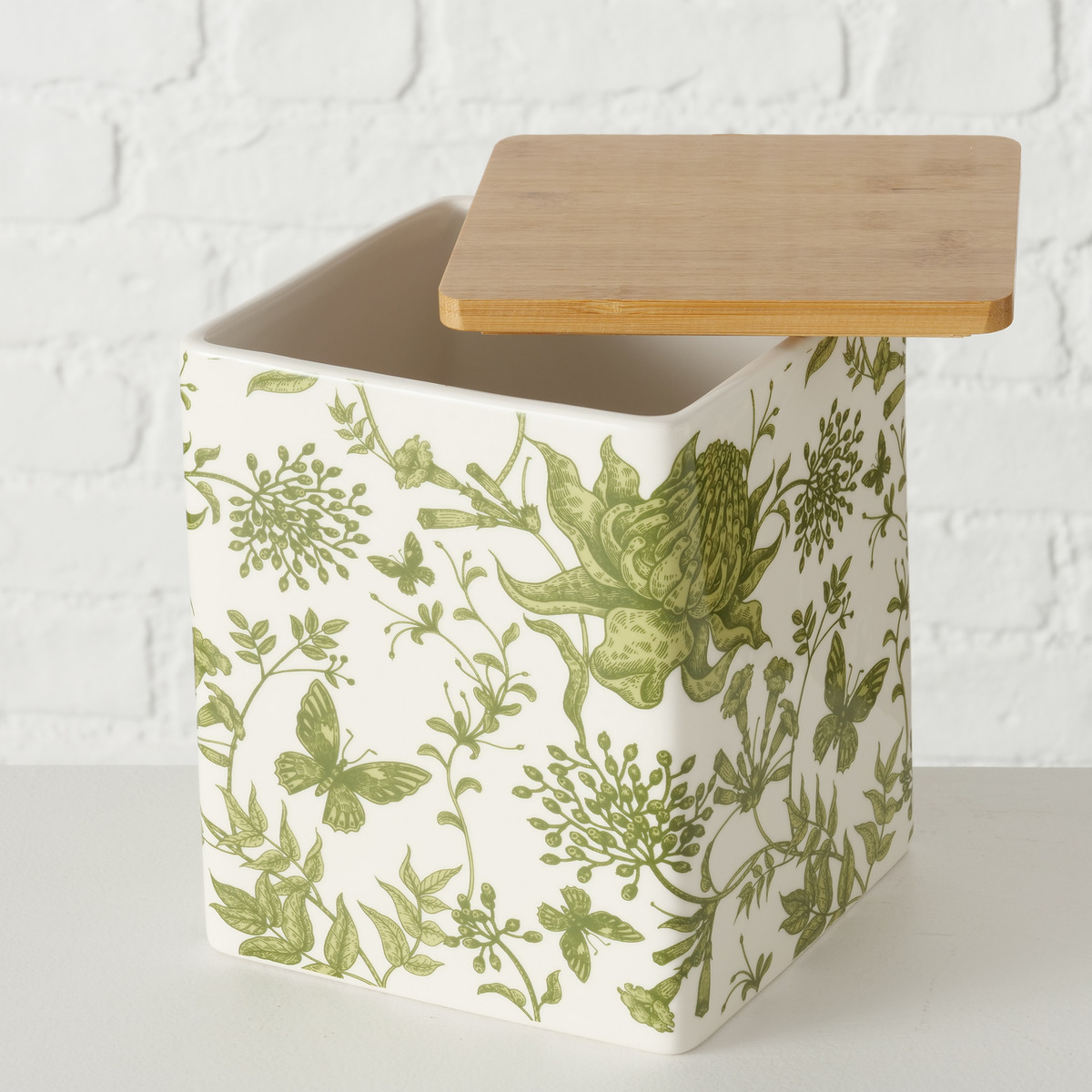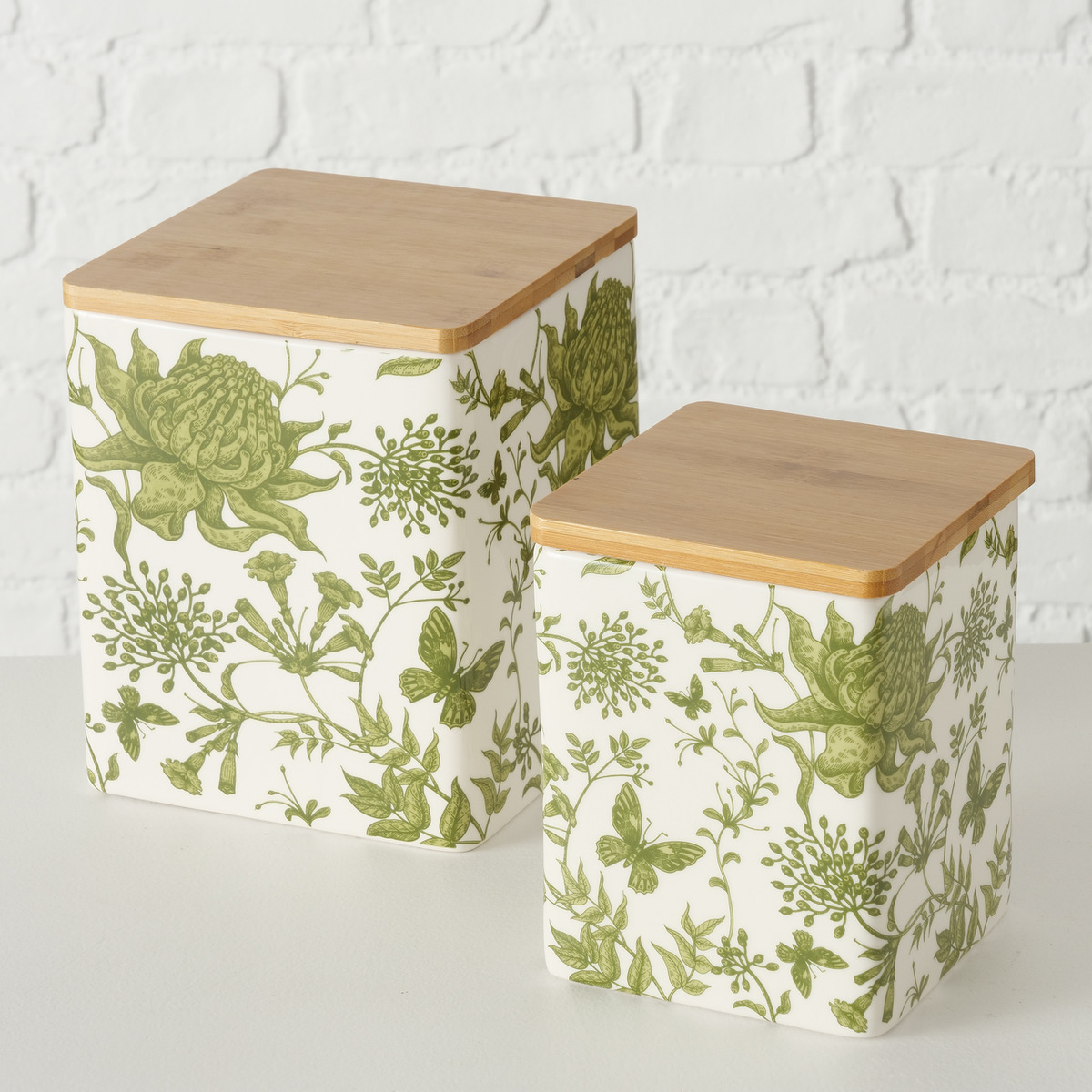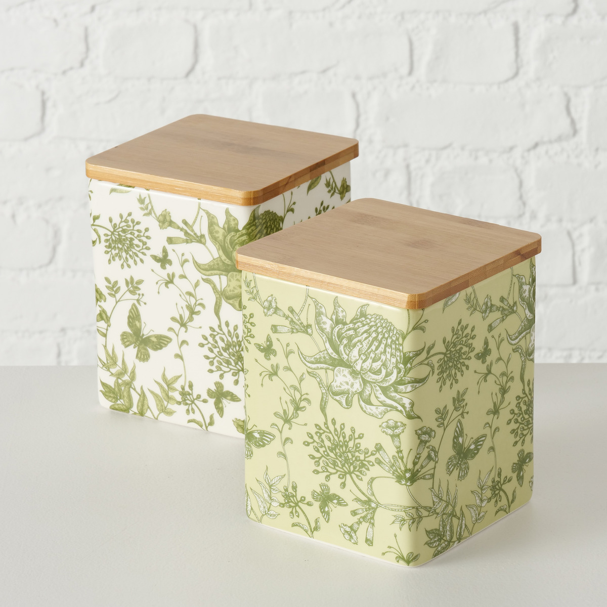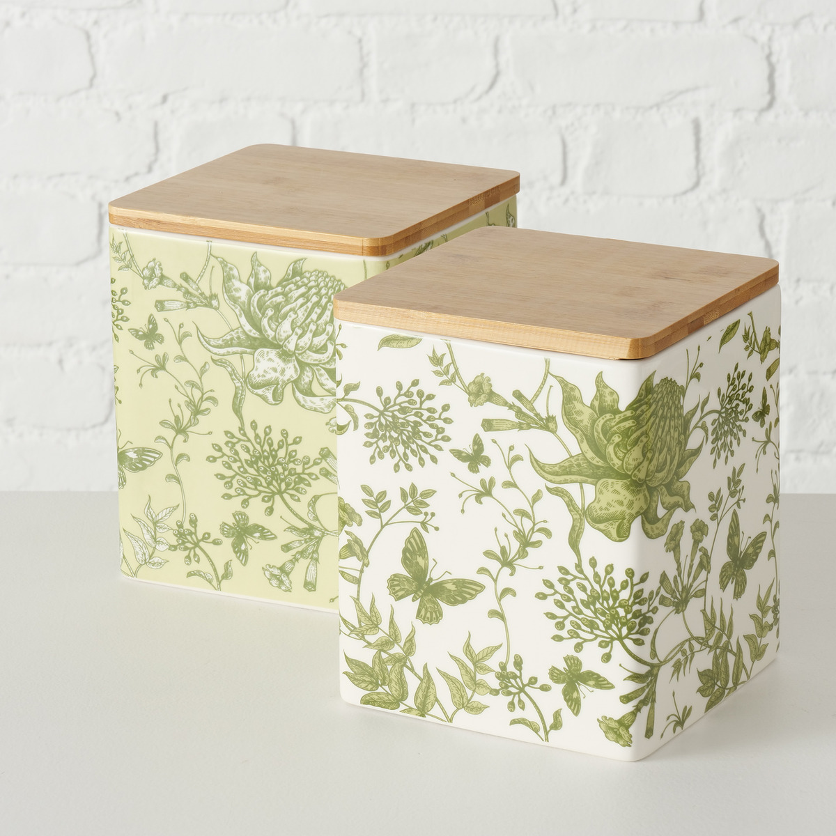 Storage canister Peona, 2 p., 2 ass., Set 2, H 17,00-20,00 cm, Dolomite, Multi-coloured, All-round printing, Green, Whit