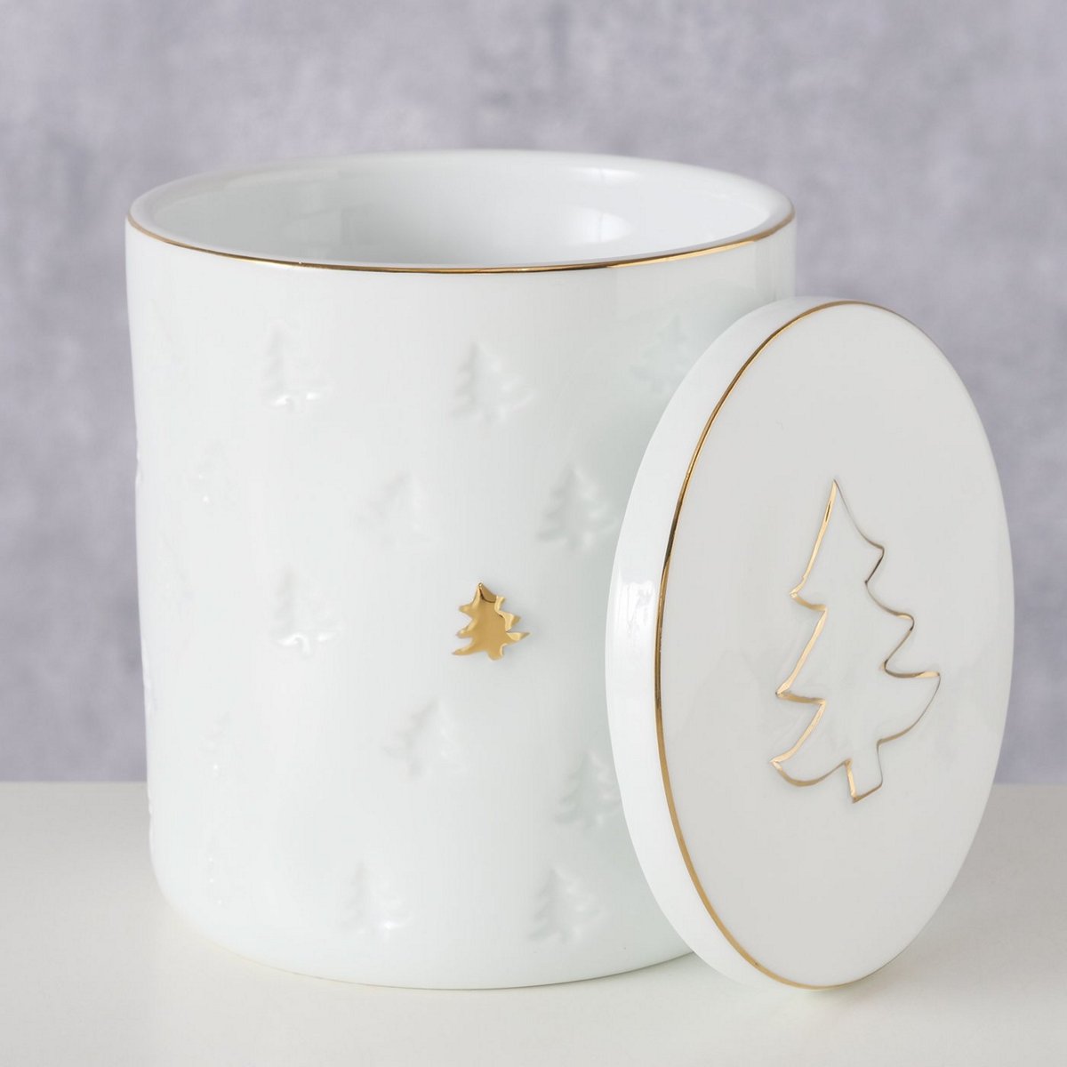 Storage canister Pino, H 13 cm, D 11 cm, Porcelain, Single-colour, Motif porcelain white