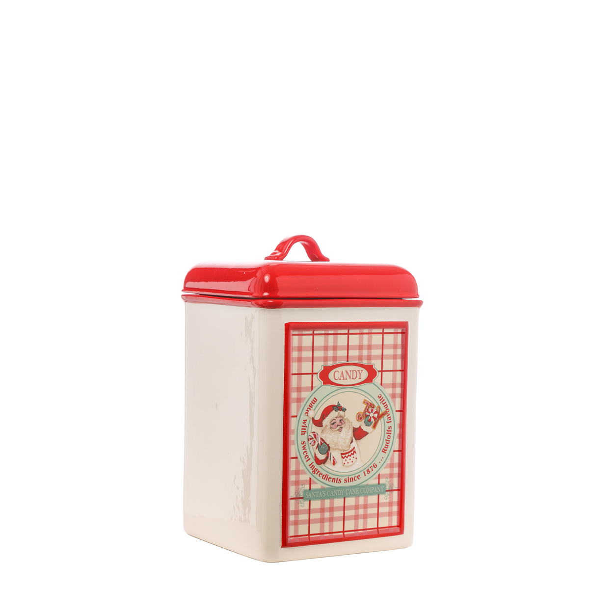 STORAGE CONTAINER CANDY RED/CHAMPAIGNE CERAMIC CM.13,5×13,5×22,3