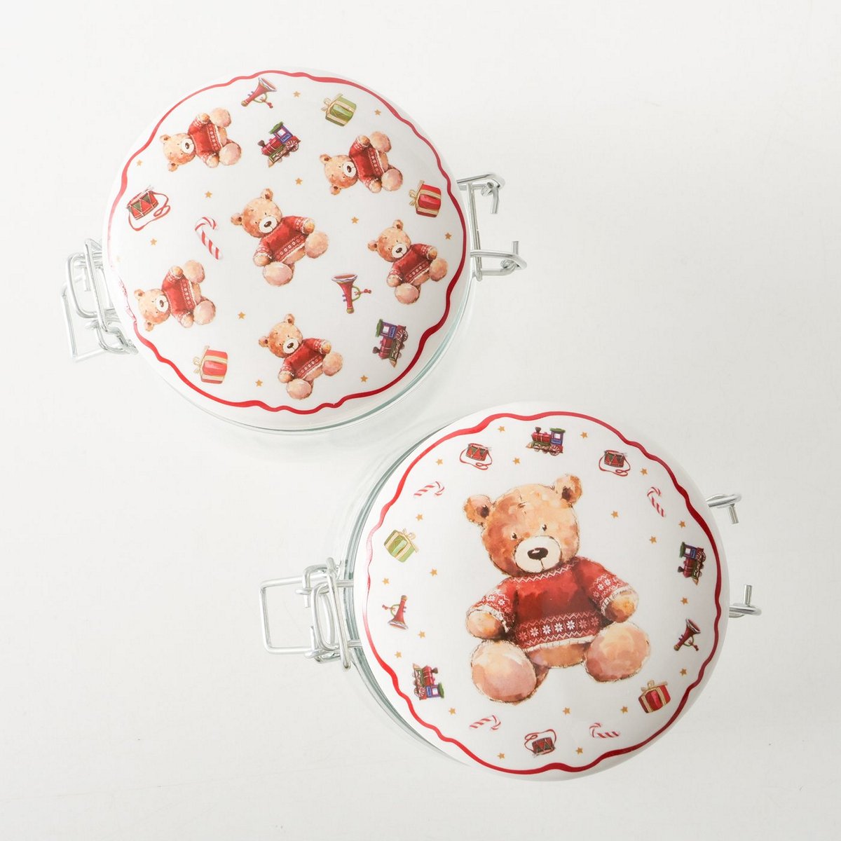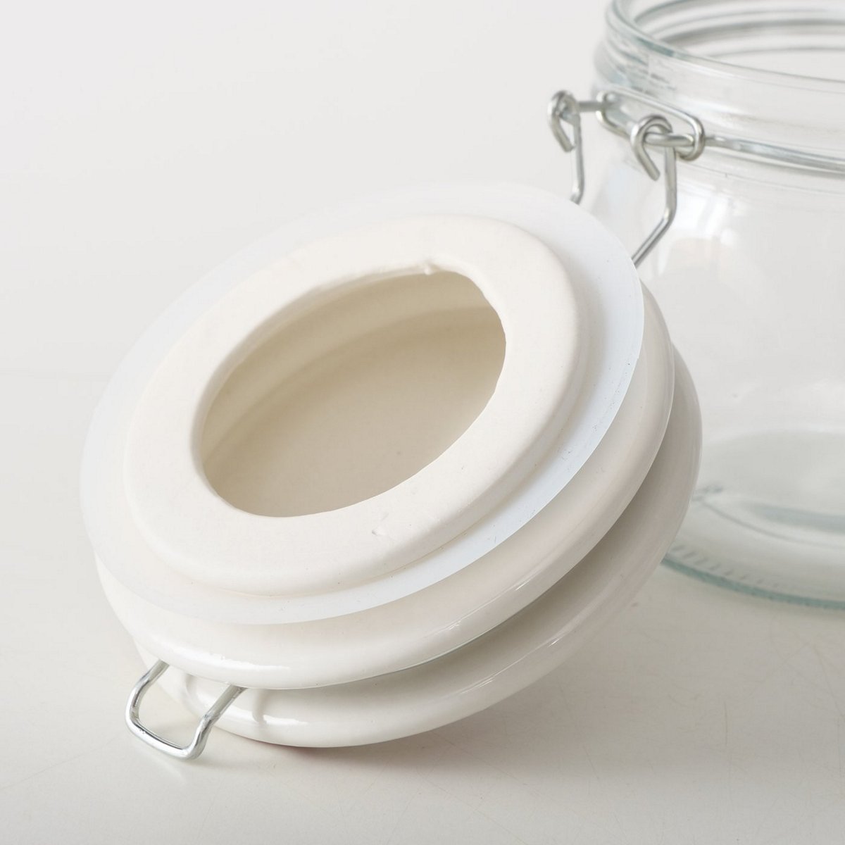 Storage jar Bailey, 2 ass., 450 ml, H 11,5 cm, Iron powder coated, Clear glass, Porcelain, Silicone, Multi-coloured, Mot