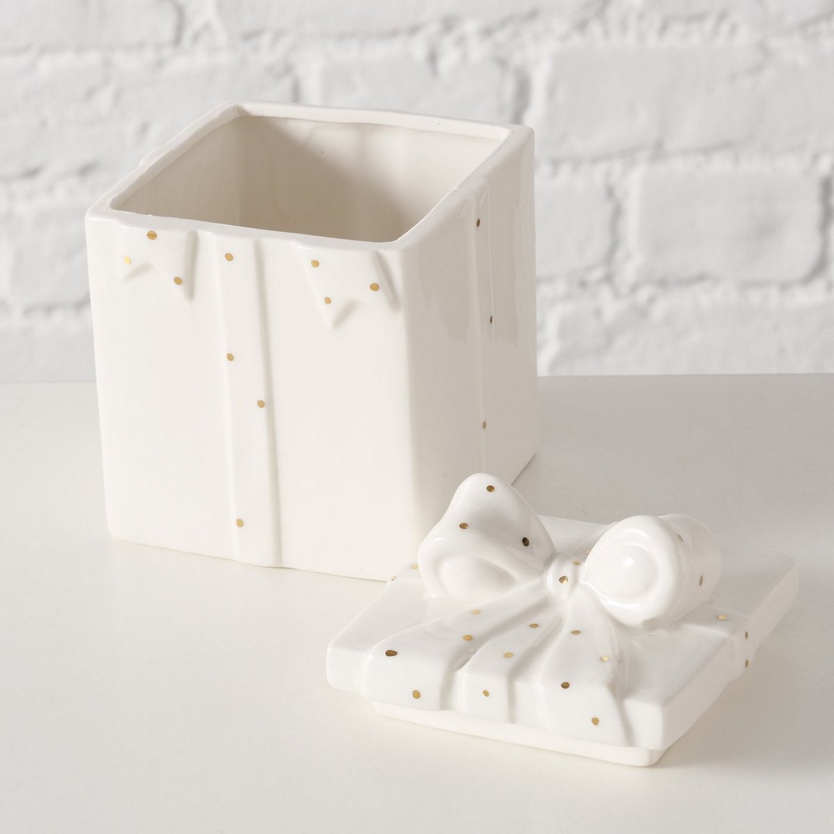 Storage jar Daysi, Dishwasher proof, H 13 cm, Porcelain, Single-colour, Dotted porcelain white