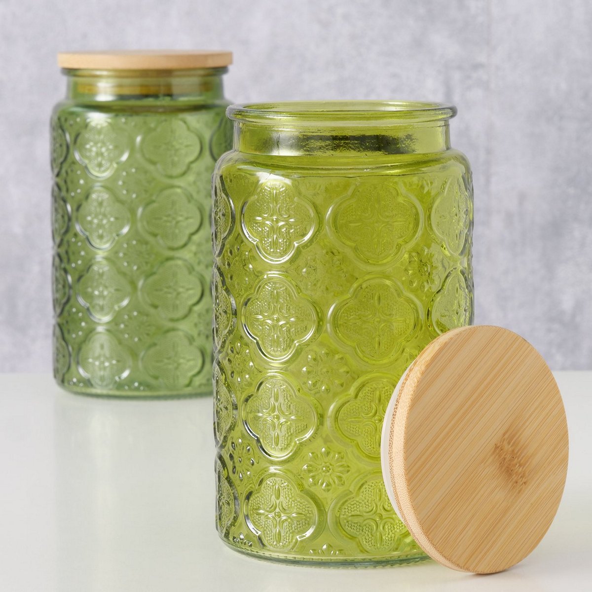 Storage jar Imola, 2 ass., 1.000 ml, H 17,5 cm, D 10 cm, Bamboo (Phyllostachys edulis), Glass lacquered, Silicone mixed