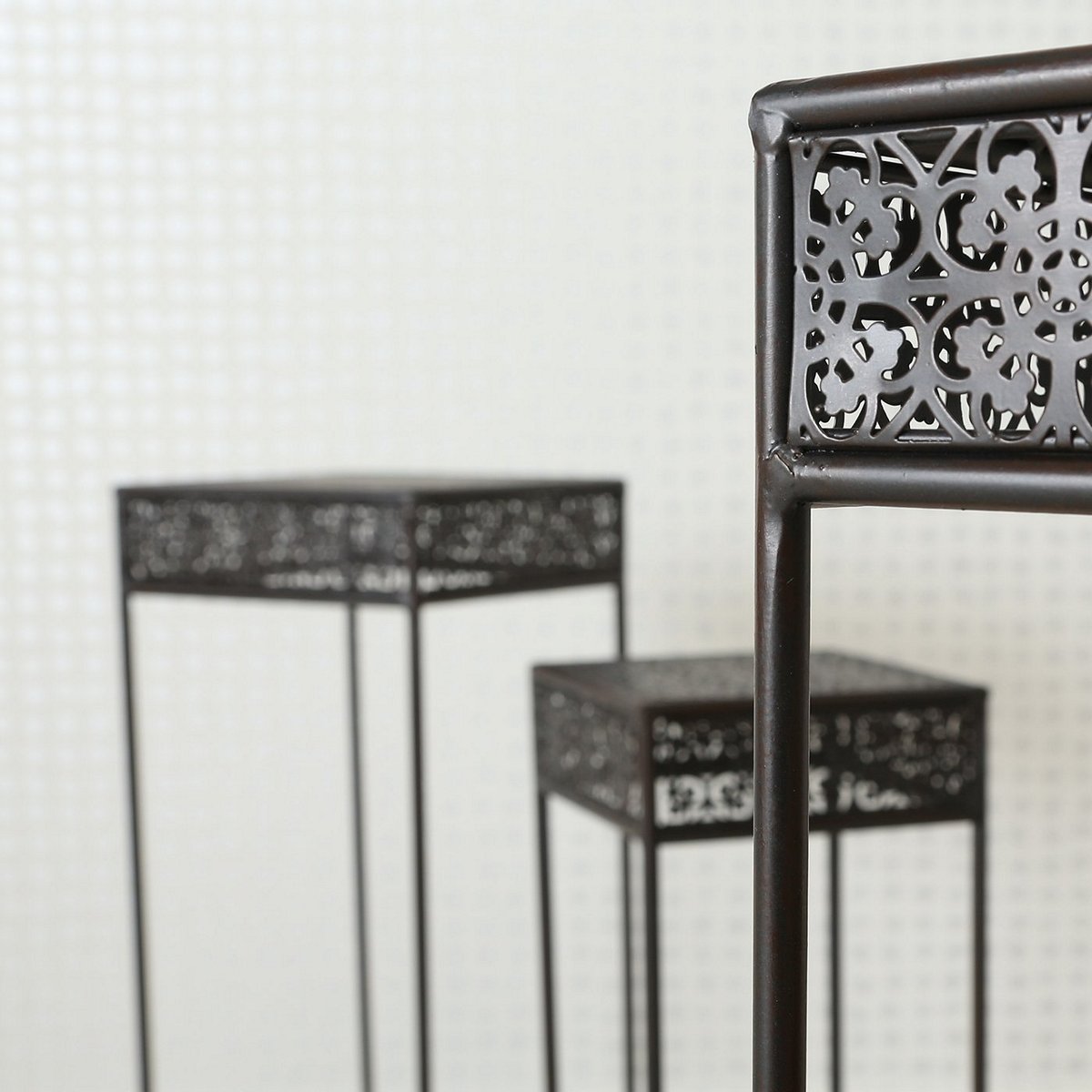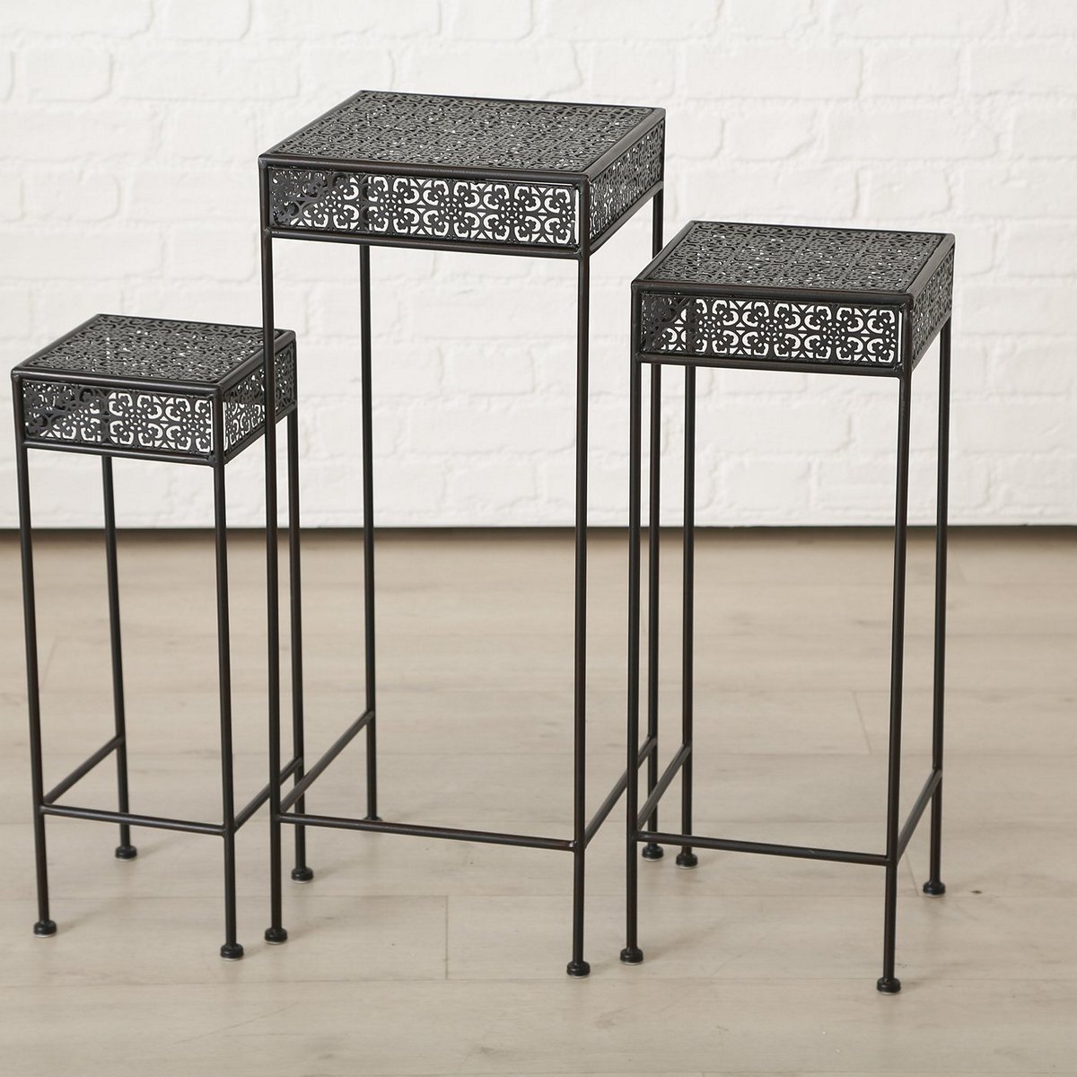 Table Broder, 3 p., Set 3, Side table, H 55-75 cm, W 20-30 cm, Iron iron darkbrown