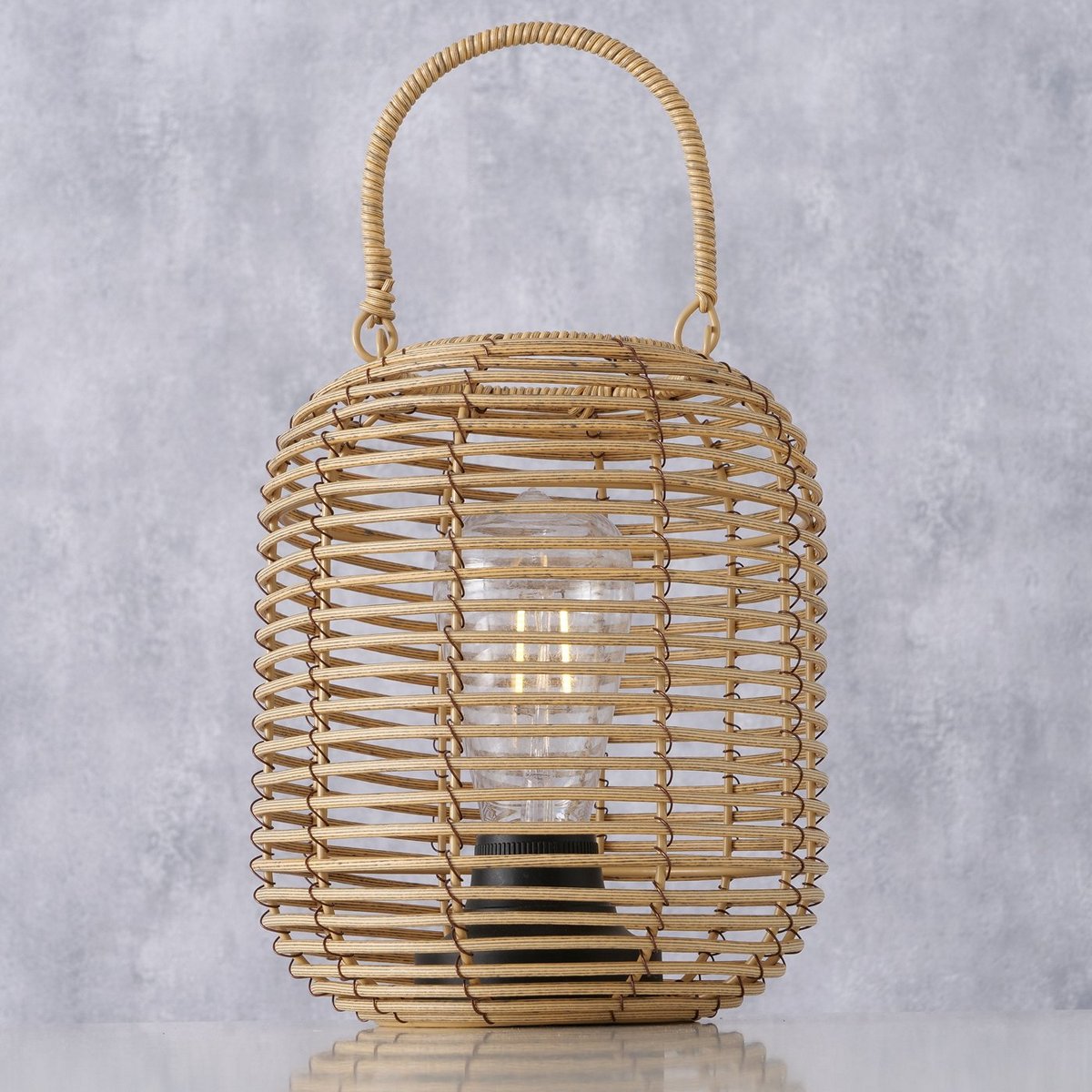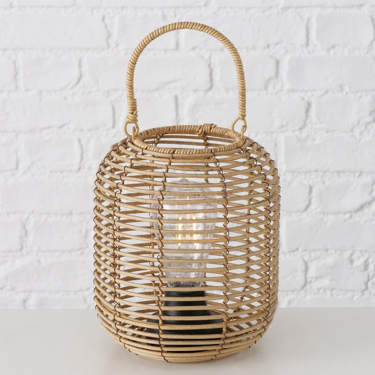 Table lamp Marona, LED, H 22,00 cm, D 18,00 cm, Iron, Polypropylene mixed materials natural