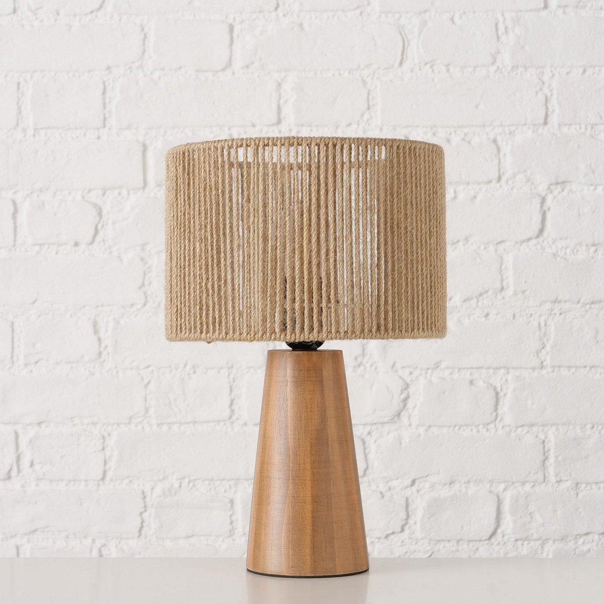 Table lamp Medika, H 34 cm, D 22,5 cm, Cedar wood (Cedrus spp.), True hemp, Indoor mixed materials brown