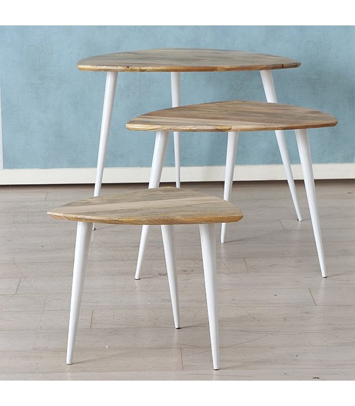 Table Pijala Set 3 Side table, Sofa table, H 37,00-56,00 cm, W 46,00-76,00 cm, Mango Iron po