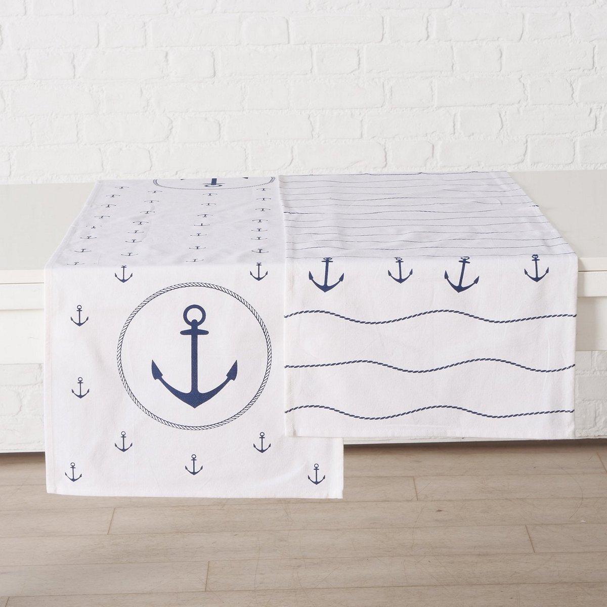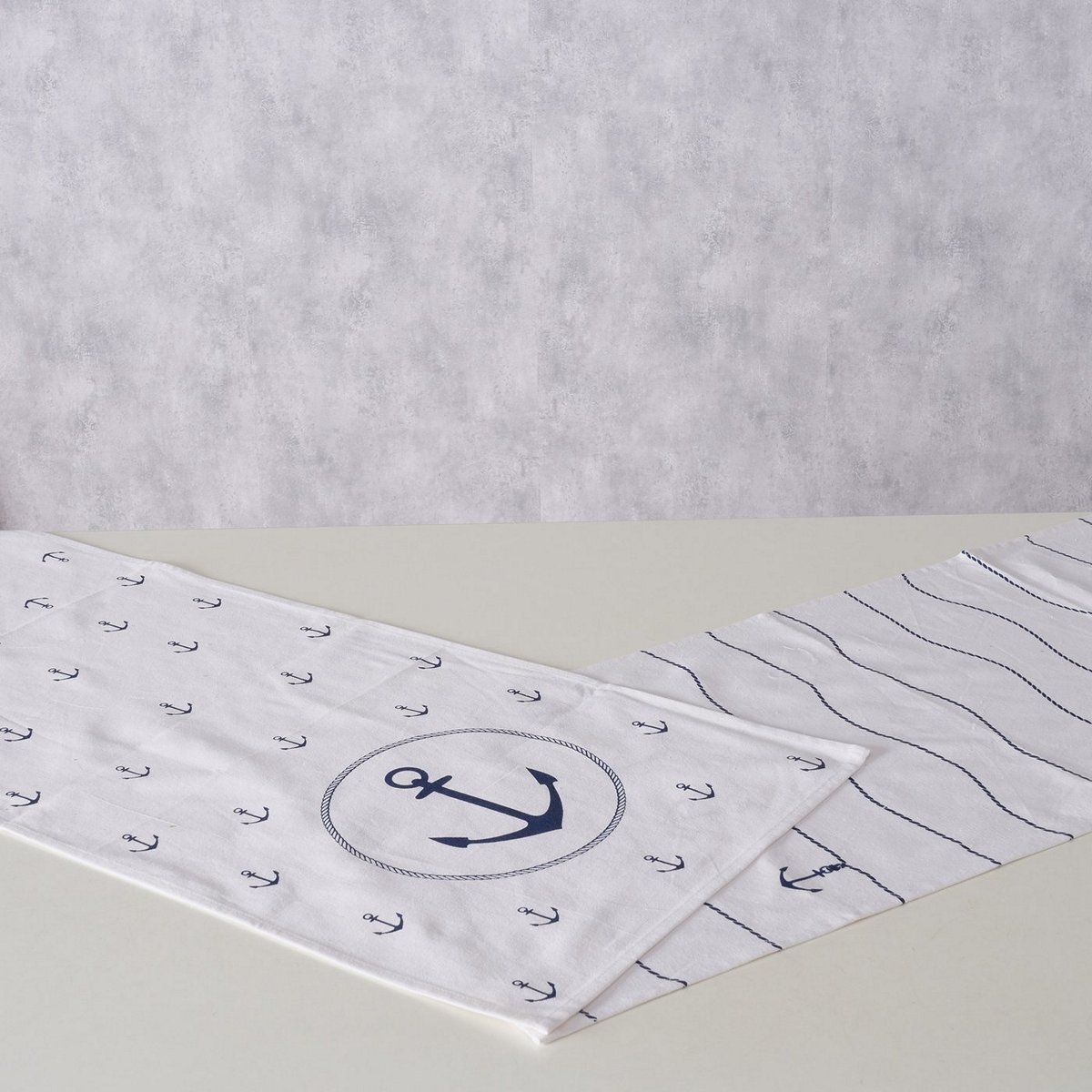 Table runner Bόsum, 2 ass., L 140 cm, Multi-coloured, Motif, No, Dark blue, White cotton colour-mix