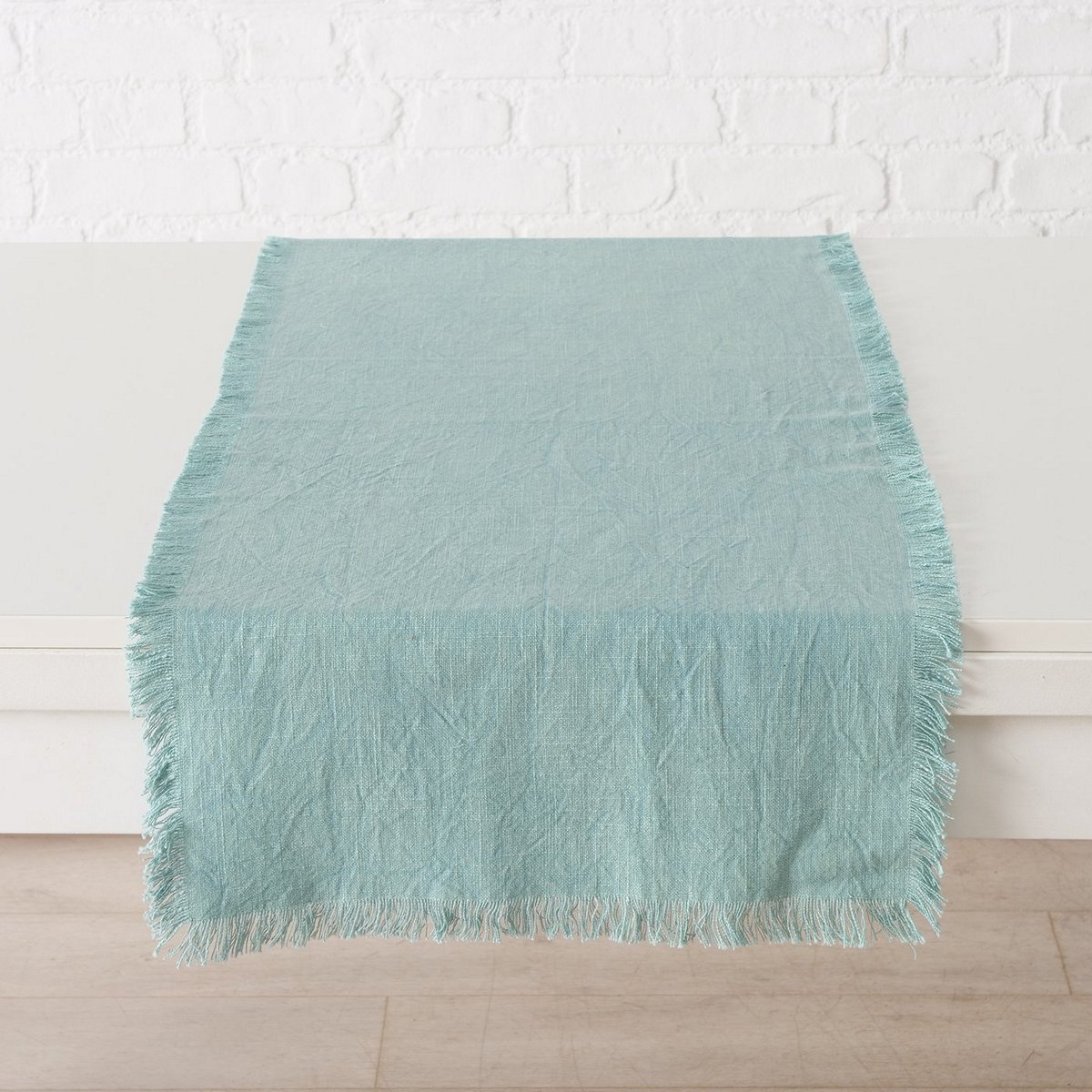 Table runner Lenea, 2 ass., L 140,00 cm, Single-colour, Washed out, Grey-blue, Light turquoise cotton colour-mix