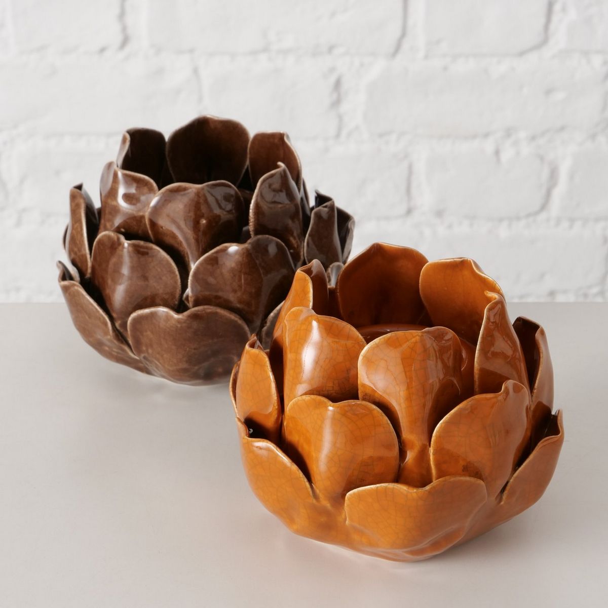 Tealight holder Maleva, 2 ass., Flower, H 10,00 cm, Earthenware, Single-colour