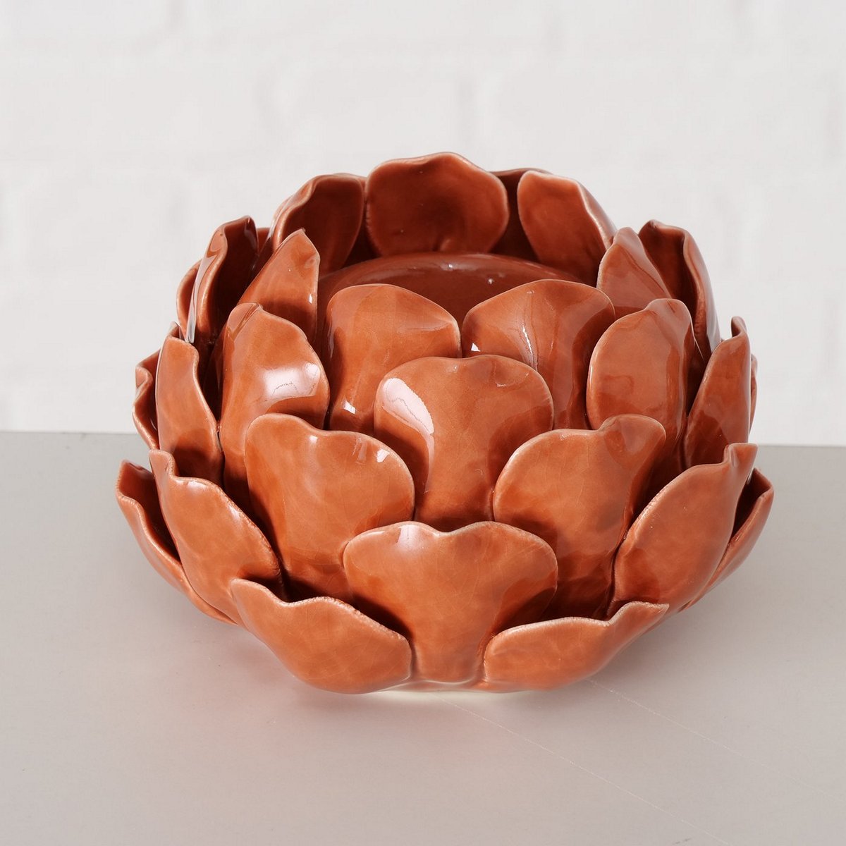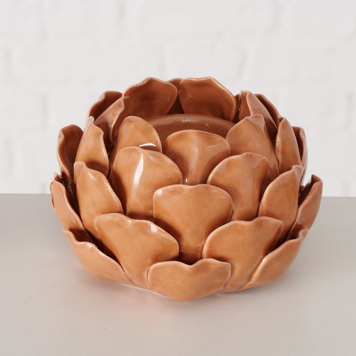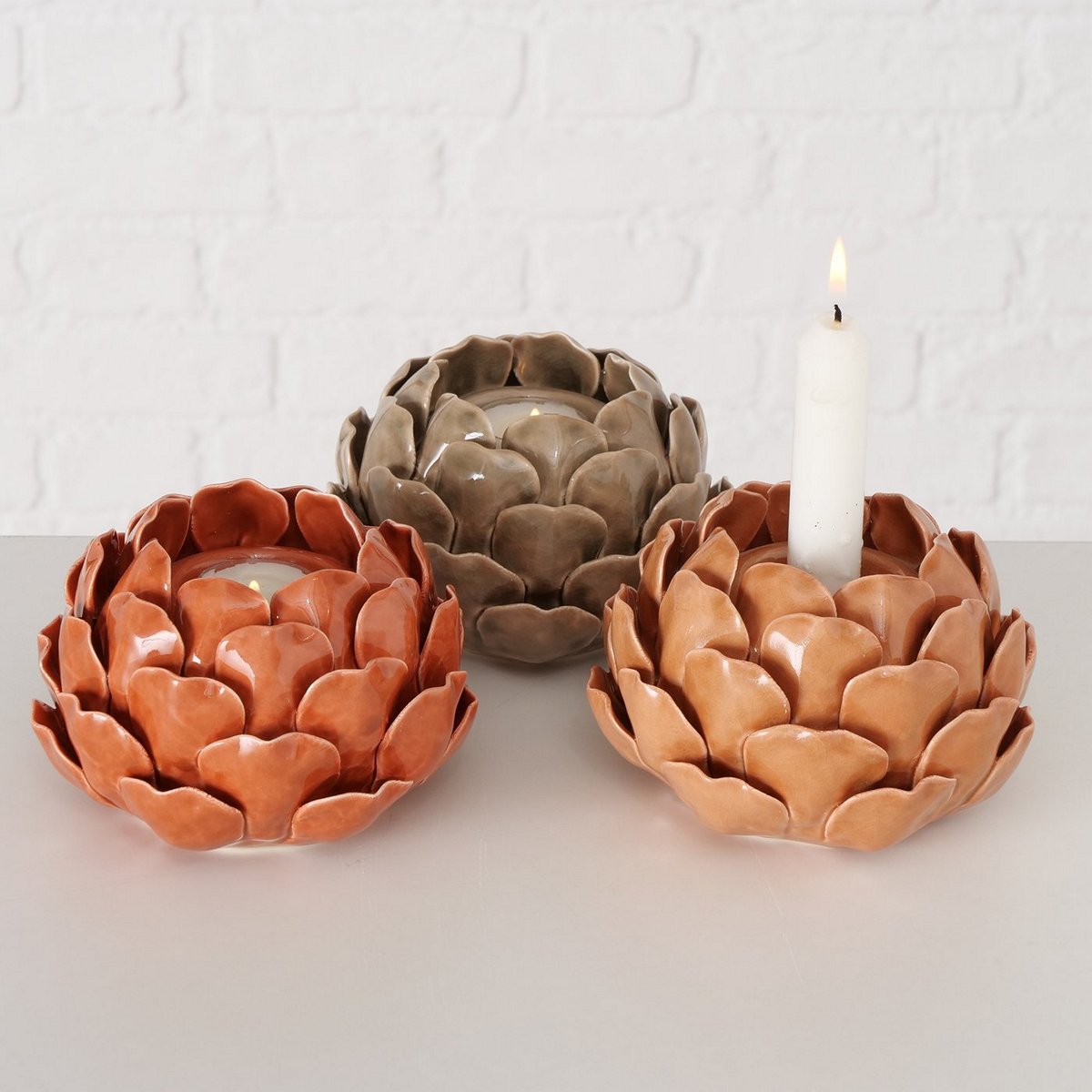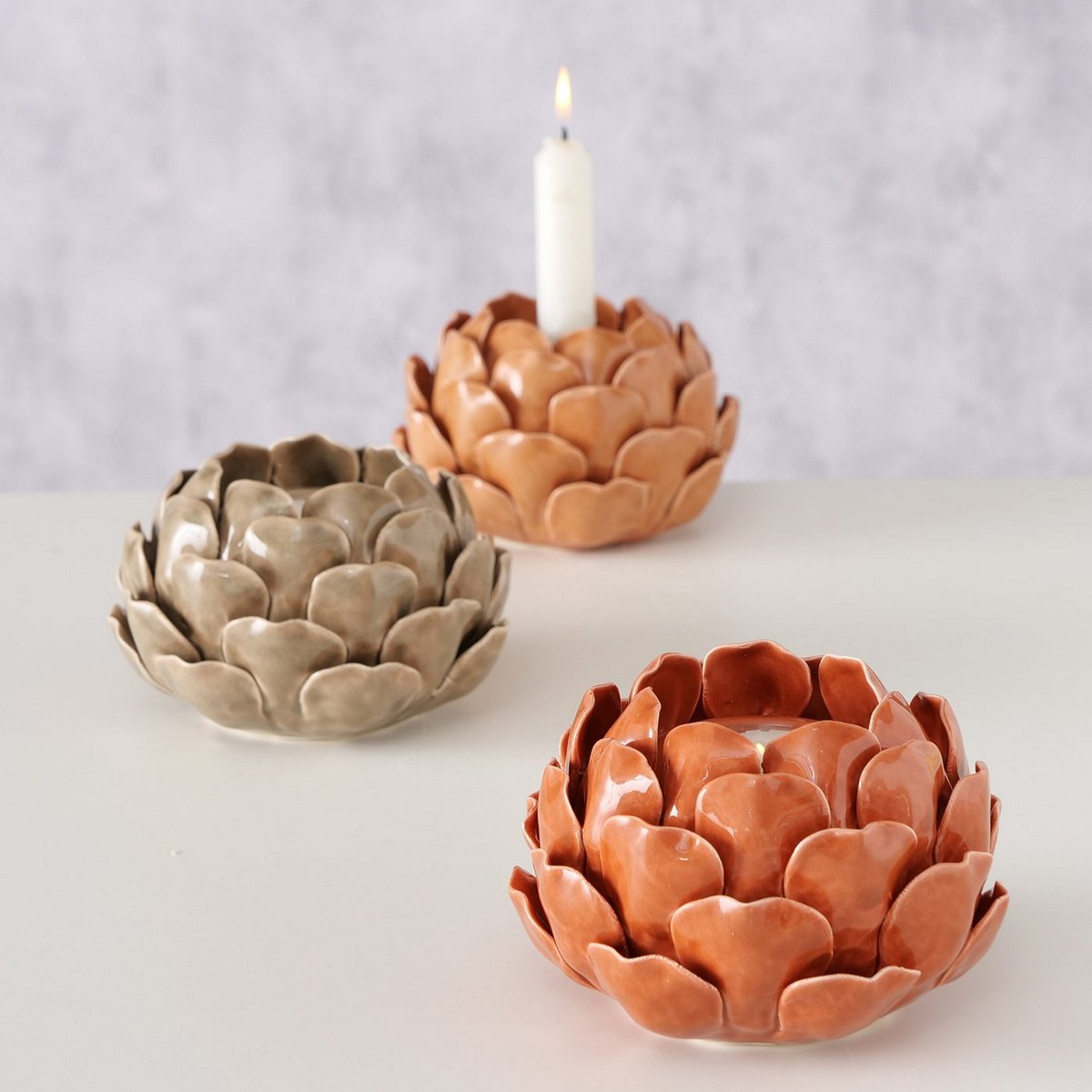 Tealight holder Maleva, 3 ass., Round, Flower, H 9,00 cm, Stoneware, Single-colour stoneware colour-mix