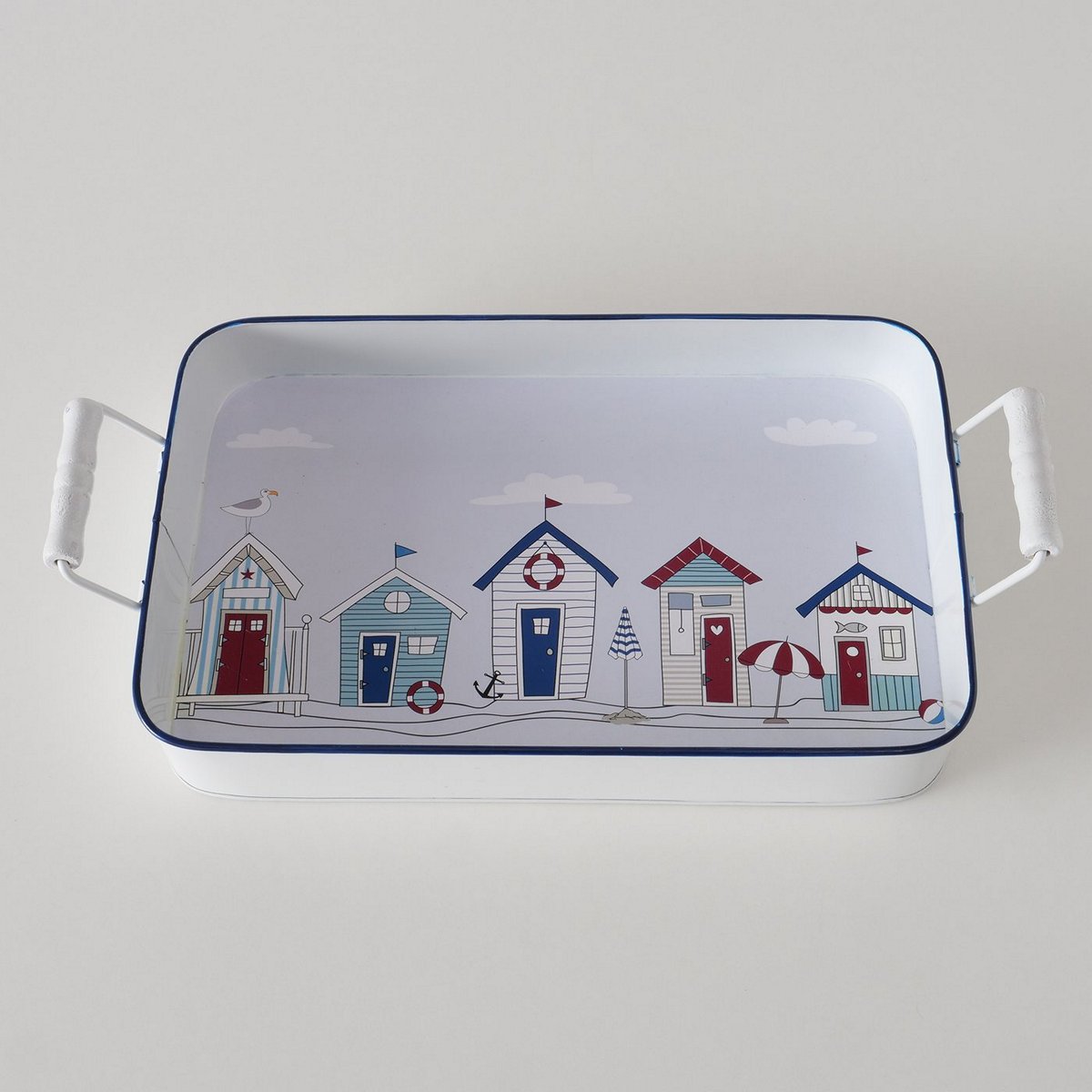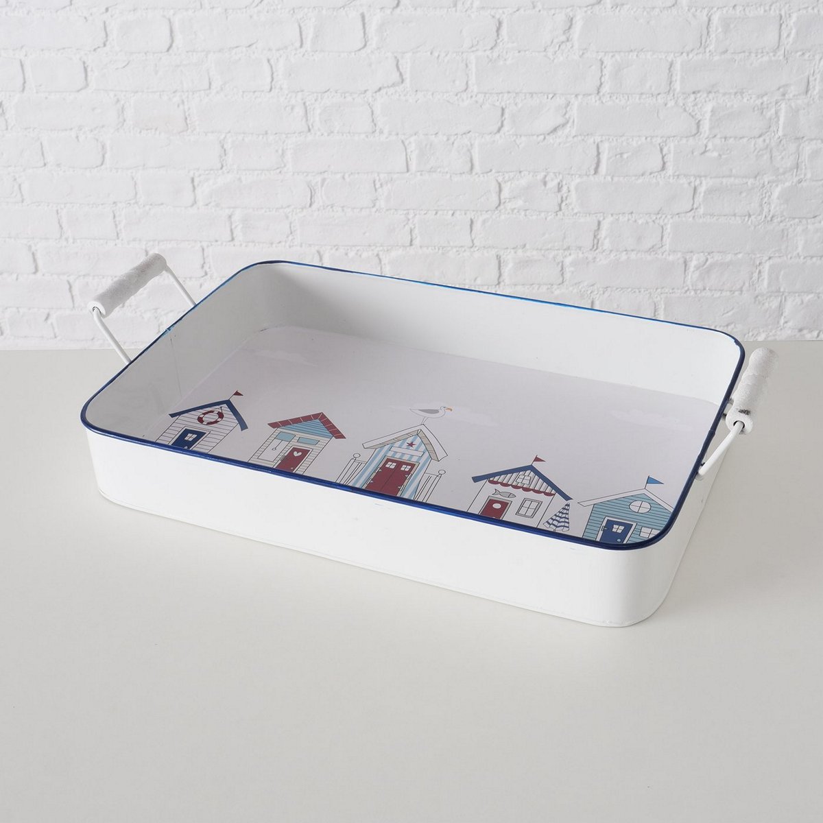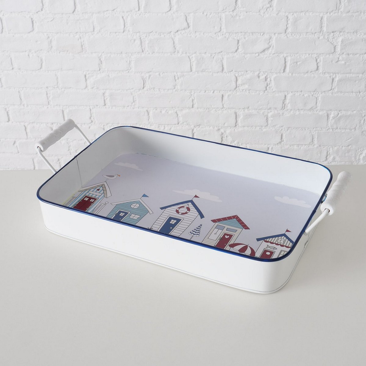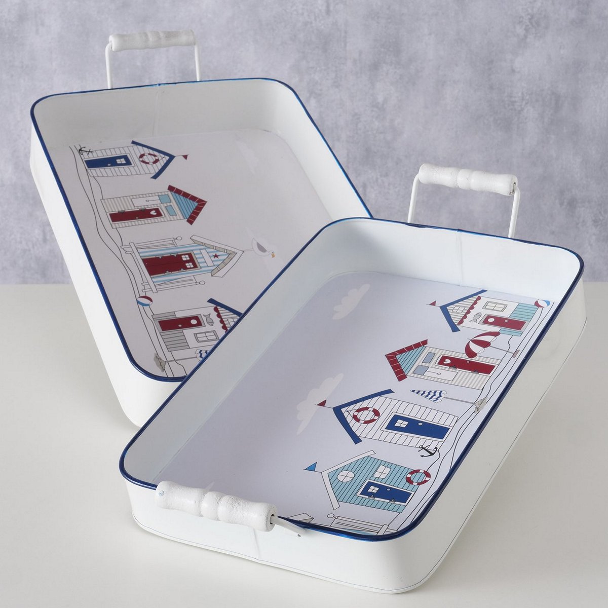 Tray Beachhouse, 2 p., Set 2, Decoration, W 26,00-300,00 cm, Chinese fir (Cunninghamia lanceolata), Zinc, Multi-coloured