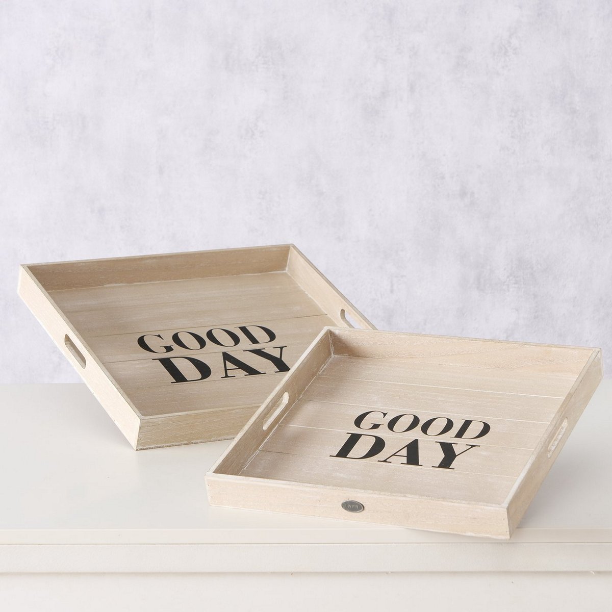 HomeSHOPTableware and BathroomTrays - Platters - Cake plates - Salad bowls Tray Goodday, 2 p., Set 2, Decoration, W 40-48 cm, MDF, Motif, Saying/Text MDF colour-mix