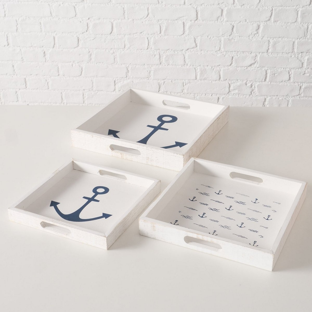 HomeSHOPSUMMER AND EASTER COLLECTIONSummer Table Tray Hallig, 3 p., Set 3, W 24-32 cm, Chinese fir (Cunninghamia lanceolata), Multi-coloured, Motif, Black, White china f