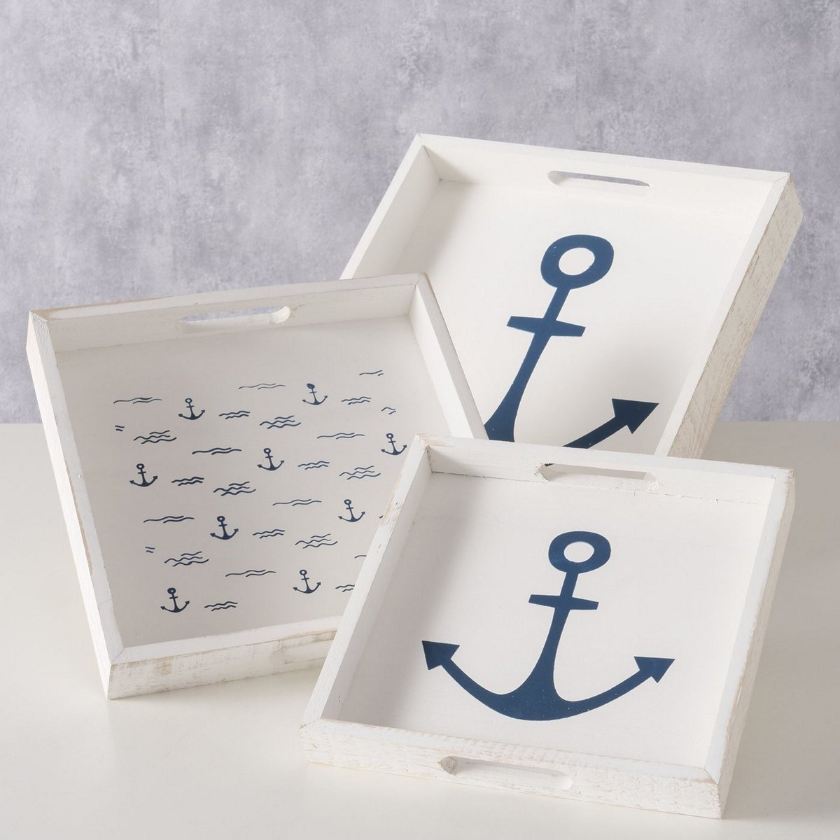 Tray Hallig, 3 p., Set 3, W 24-32 cm, Chinese fir (Cunninghamia lanceolata), Multi-coloured, Motif, Black, White china f