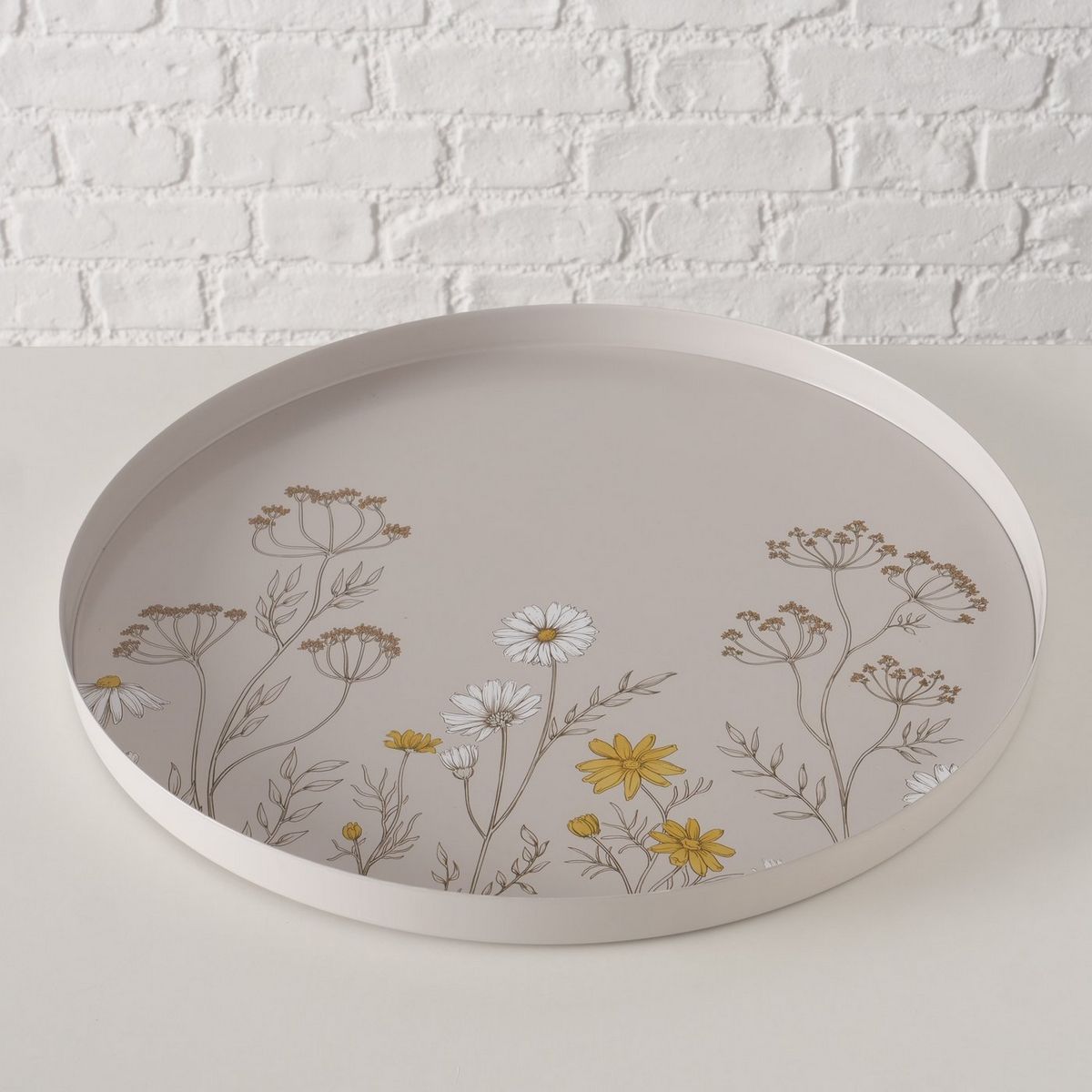 Tray Meadow, Iron powder coated, All-round printing, Floral, Multi-coloured, Beige
