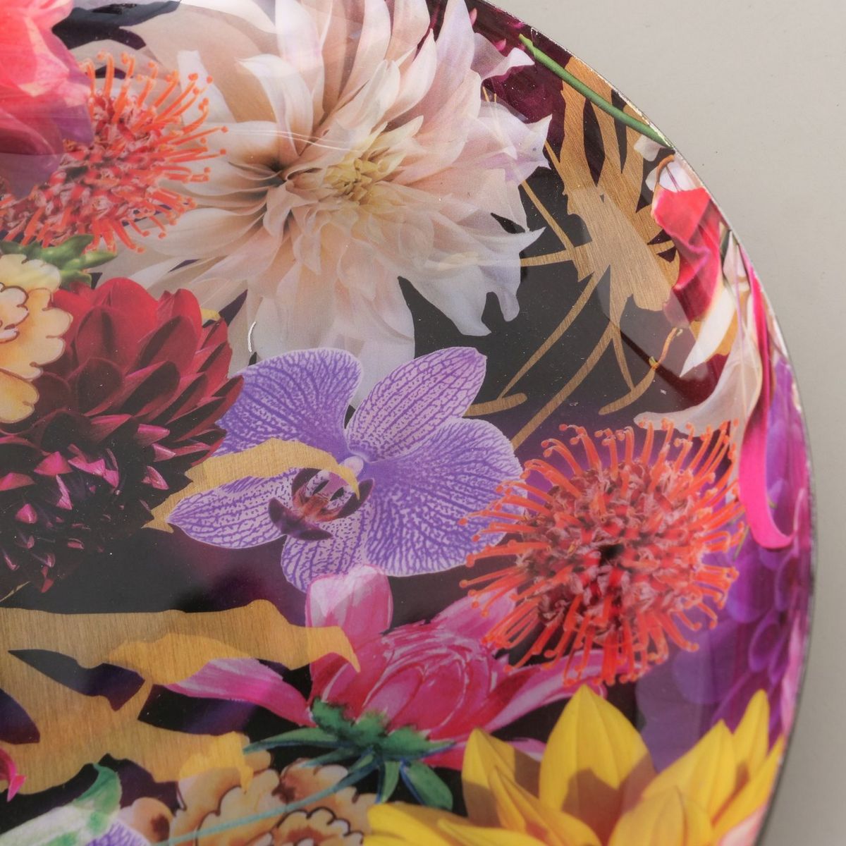 Tray Opulent, Iron, Floral, Multi-coloured, Black