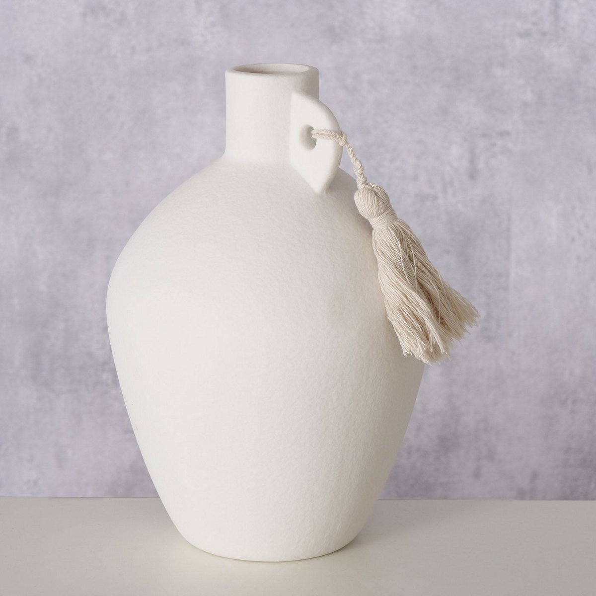 Vase Bruny, H 22 cm, Earthenware, Cotton, Mat, Single-colour mixed materials white