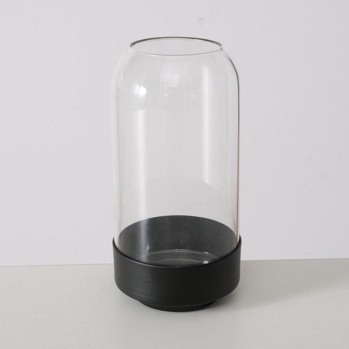 Vase Malena, H 18 cm, Iron powder coated, Clear glass, Mat, Single-colour mixed materials black