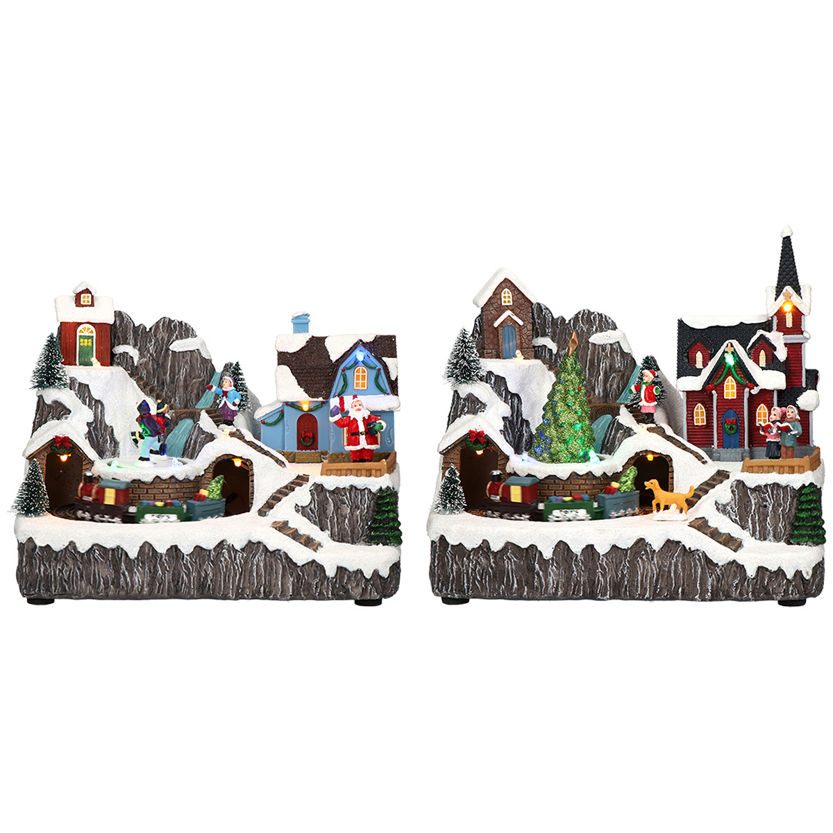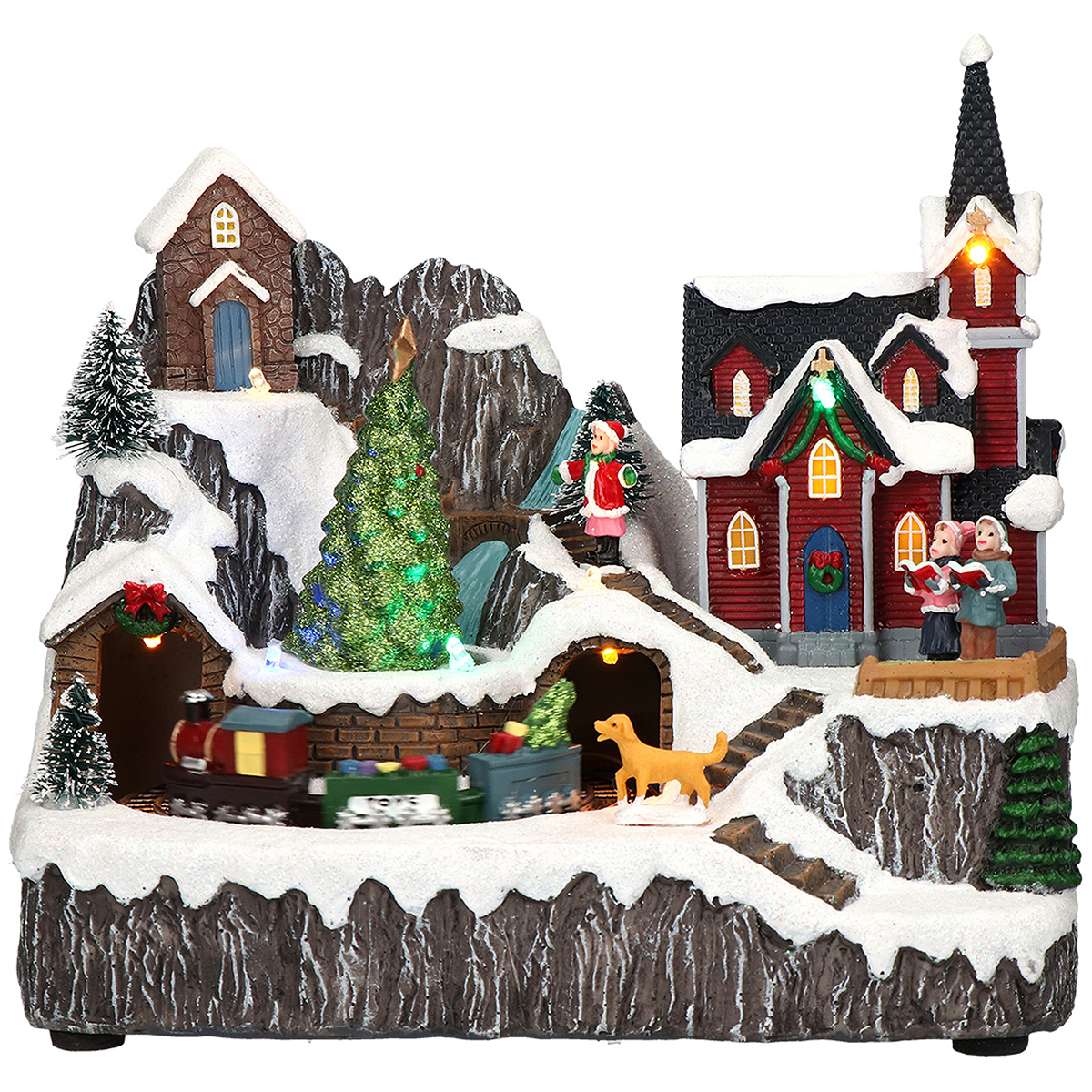 Village train animated 2ass Multicolor-LED-22,5x15x18,5cm