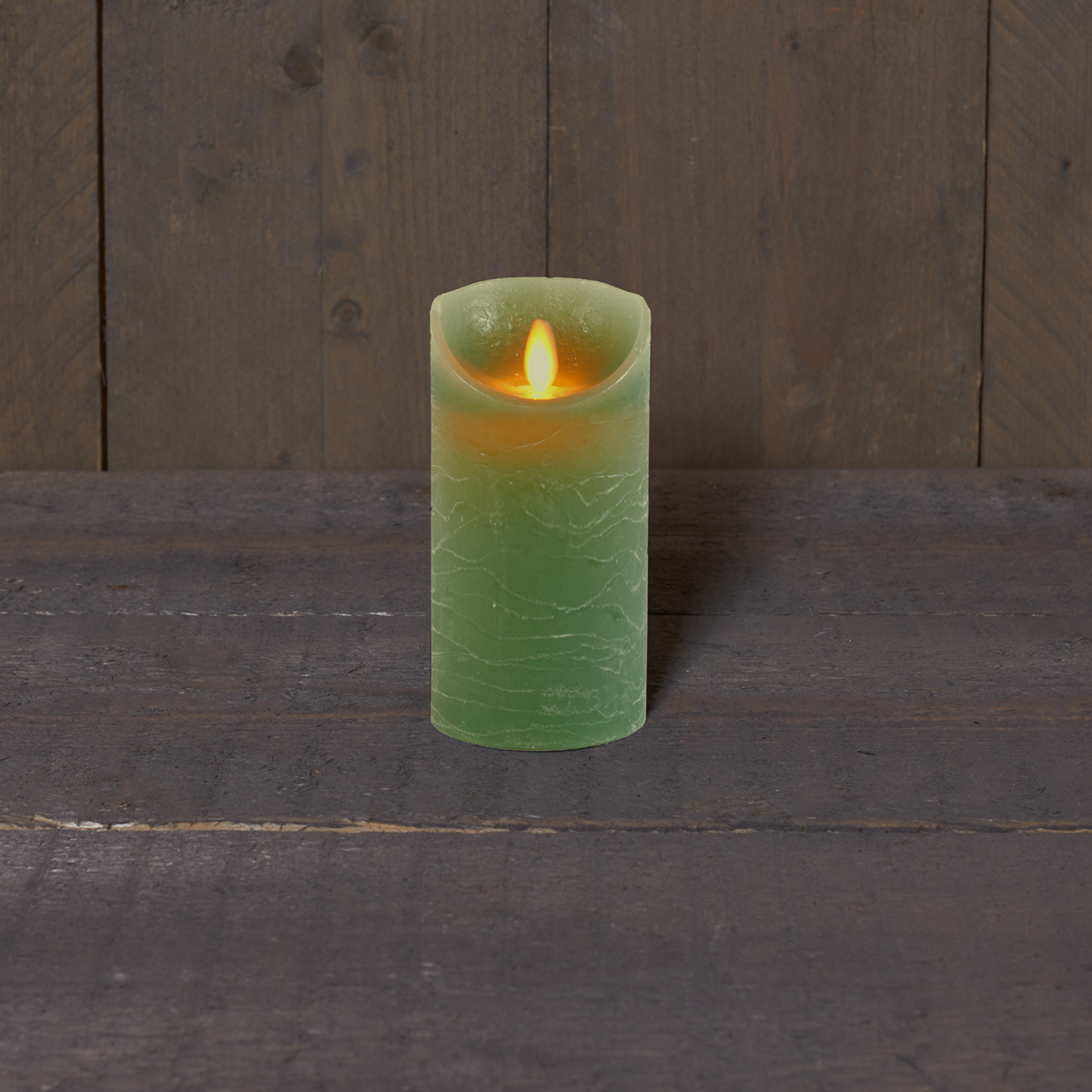 WAX CANDLE RUSTIC JADE GREEN B,O,T, (7,5X15CM)[3XAAA]