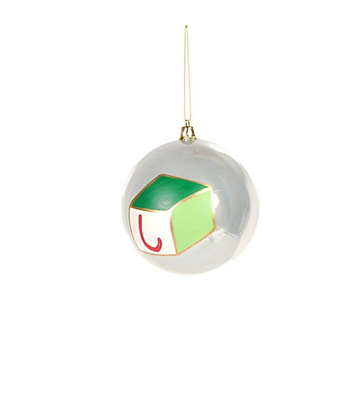 WHI GLASS BALL W/DICE ORNAMENT 10 CM