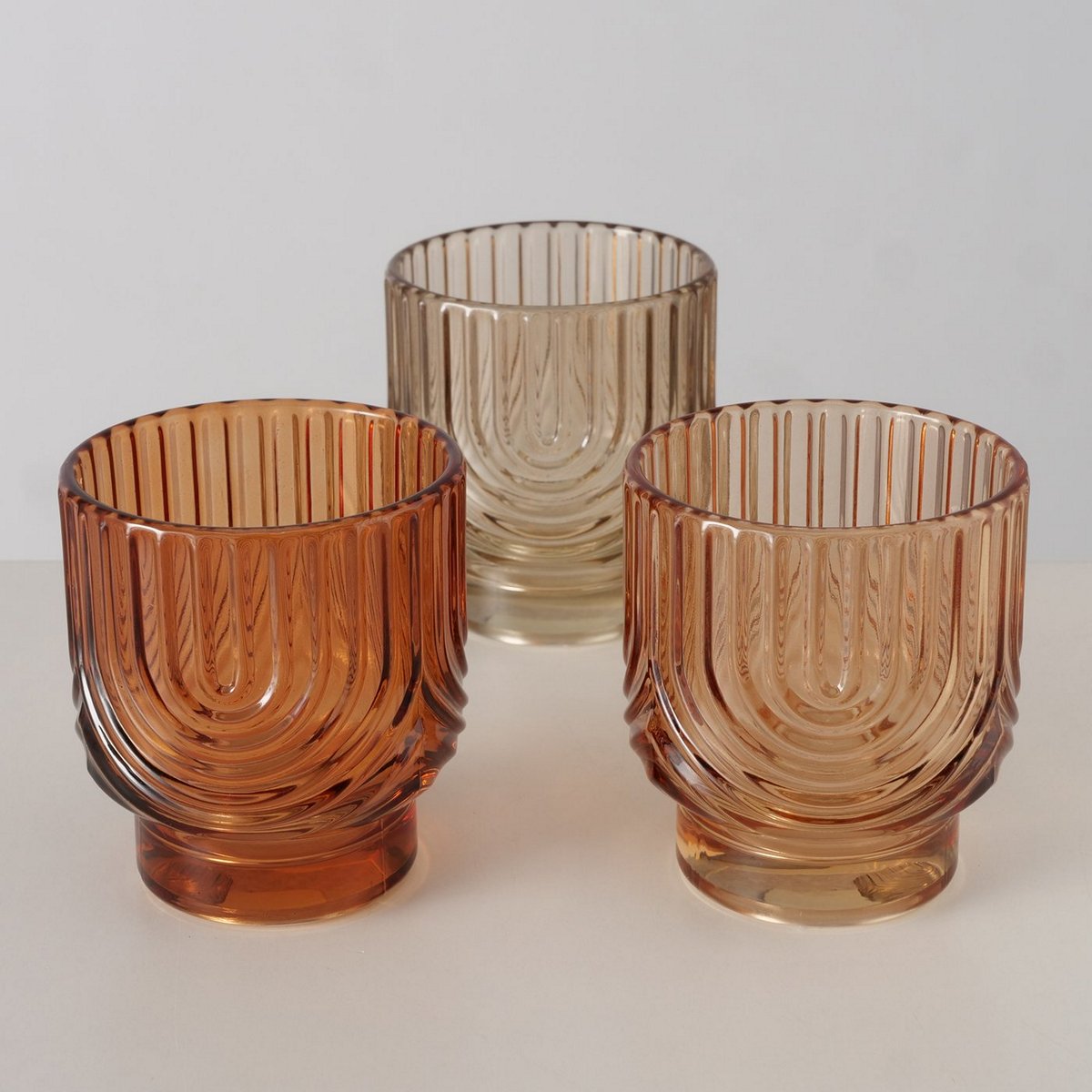 Windlight Arcy, 3 ass., Round, H 8 cm, Glass lacquered, Single-colour glass laquered colour-mix