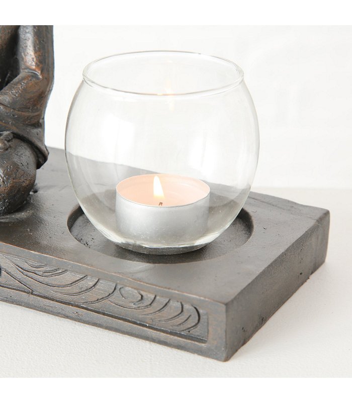 Windlight Buddha, Buddha, Rectangle, H 14,00 cm, Polyresin, Single-colour polyresin colour-mix