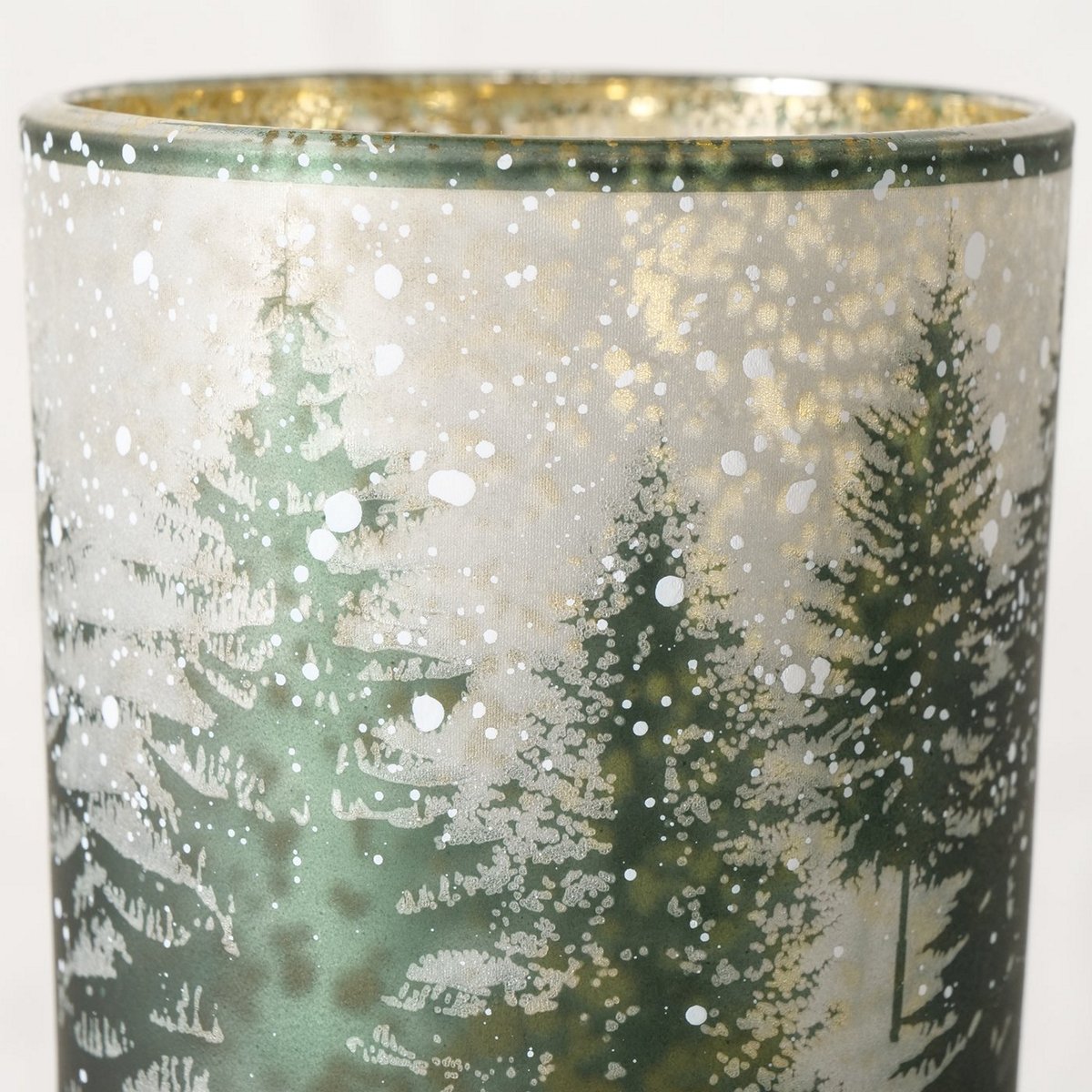 Windlight Elmas, Round, H 8 cm, Glass lacquered, Multi-coloured, Motif glass laquered green