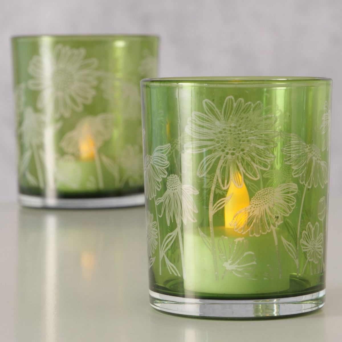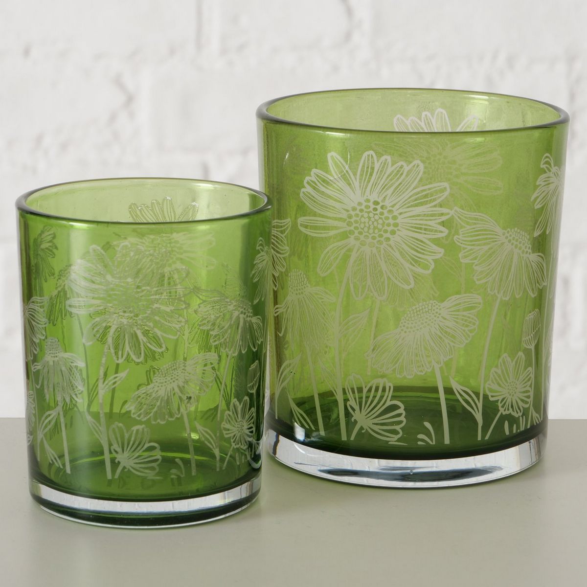 Windlight Gardo, 2 p., Set 2, Round, H 8,50-10,00 cm, Glass lacquered, Floral, Single-colour