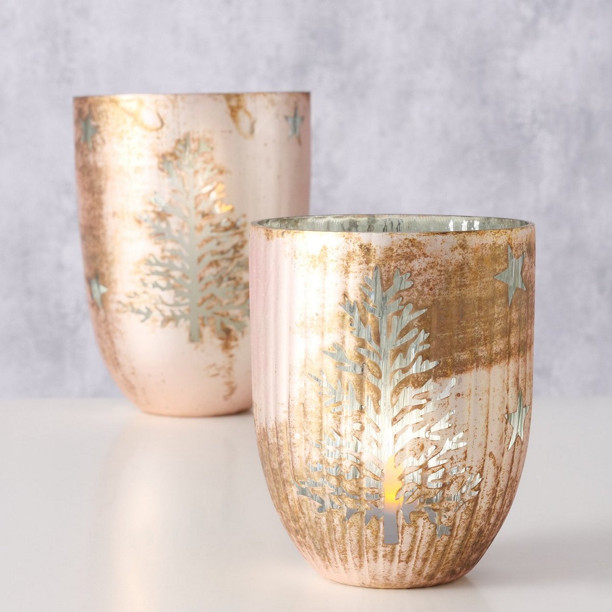 HomeSHOPDECORATIONLanterns and Windlights Windlight Grenolia, 2 p., Set 2, Round, H 15-21 cm, Glass laquered, Multi-coloured glass laquered colour-mix