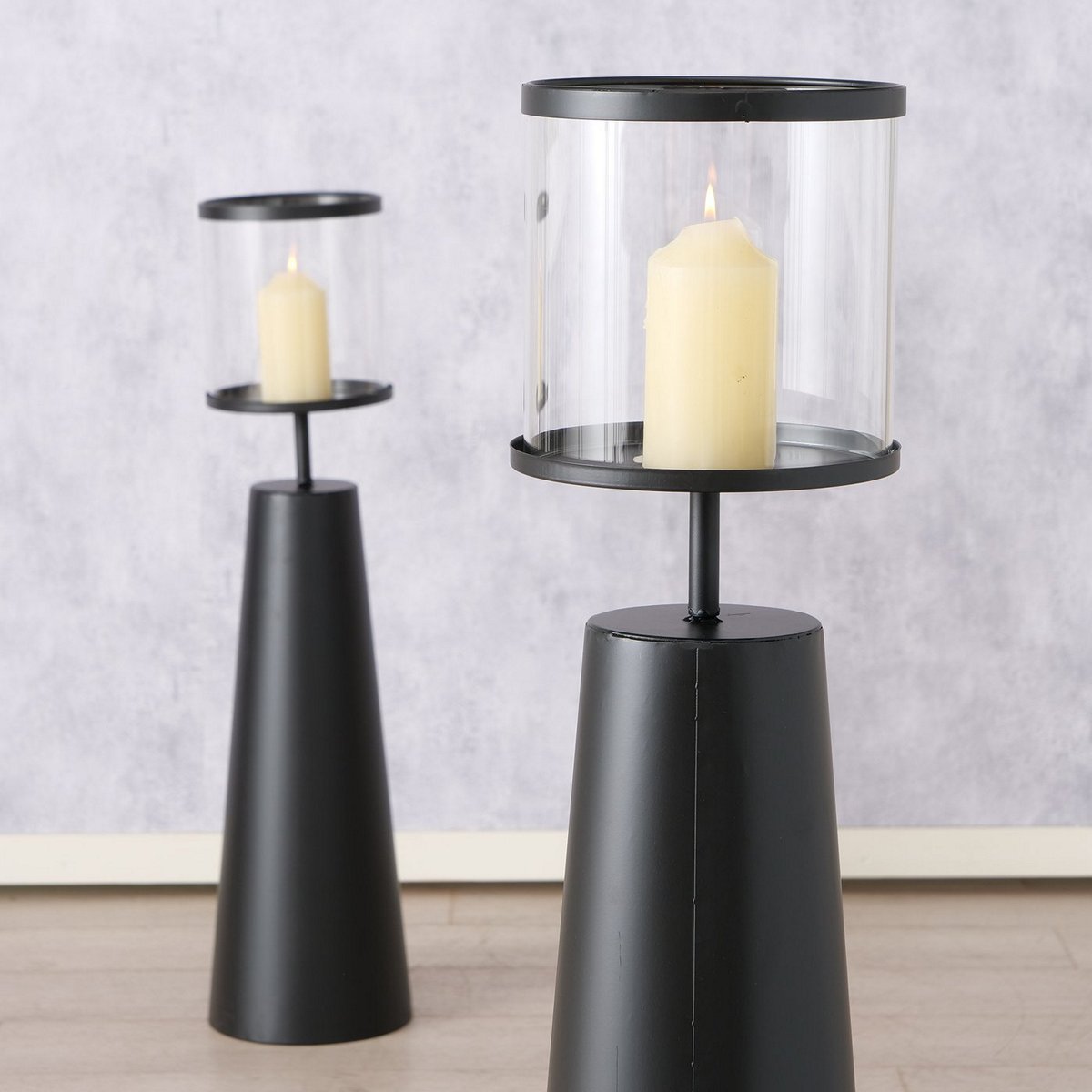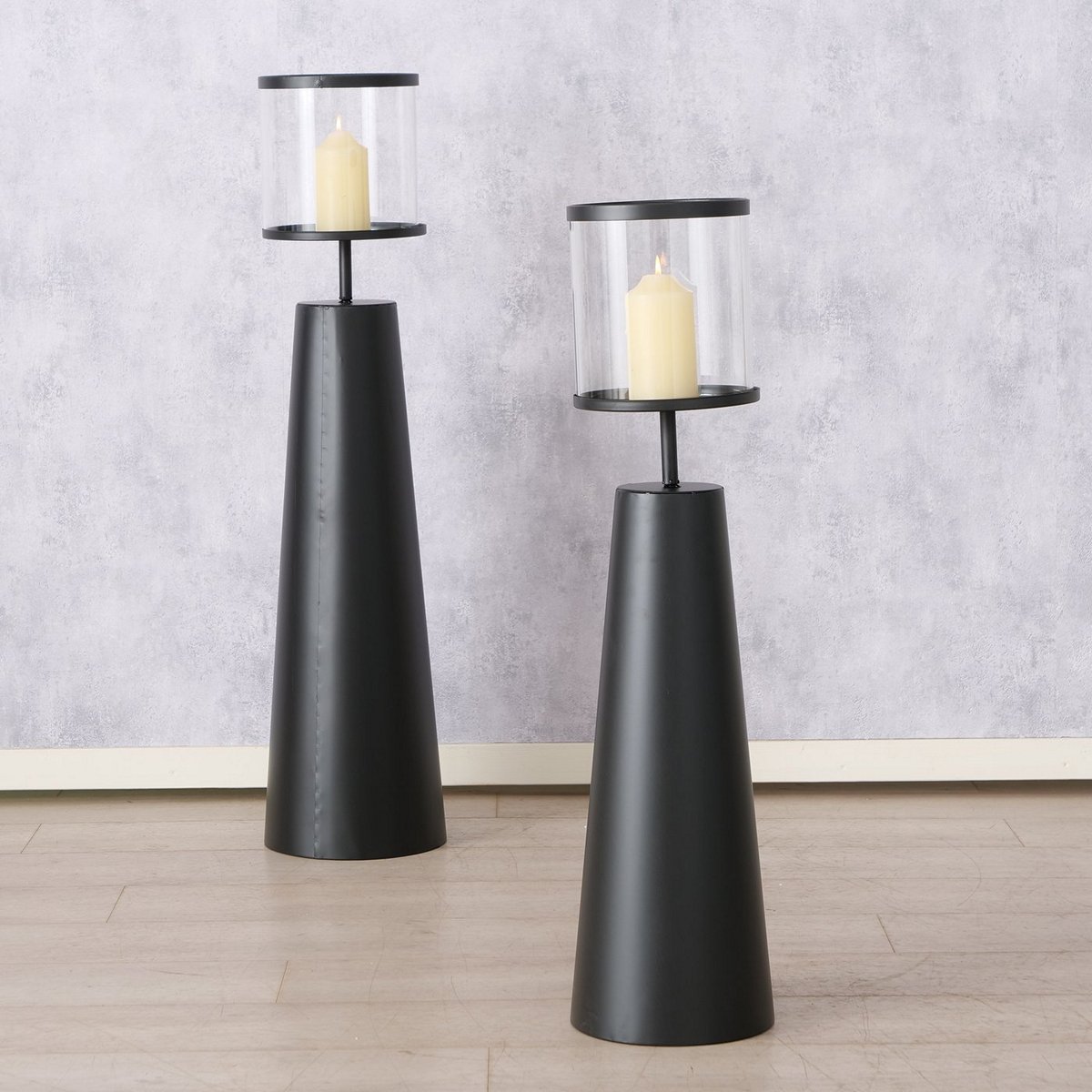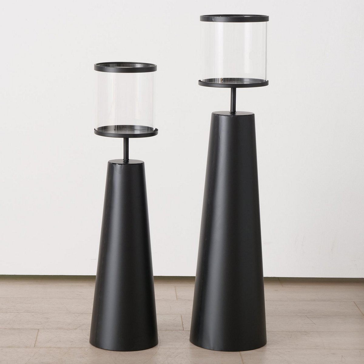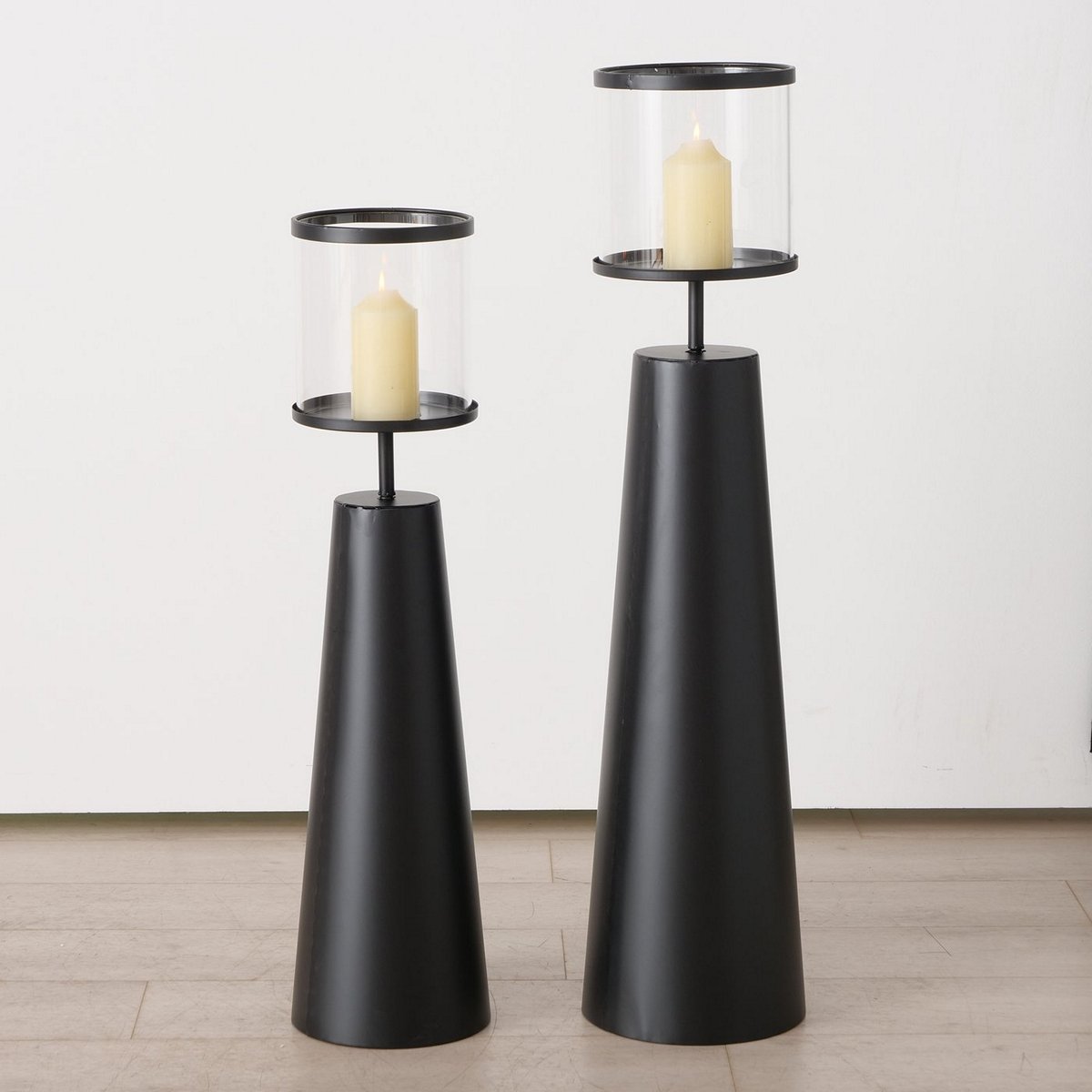 Windlight Hestra, 2 p., Set 2, Round, H 86-100 cm, Iron, Single-colour iron black