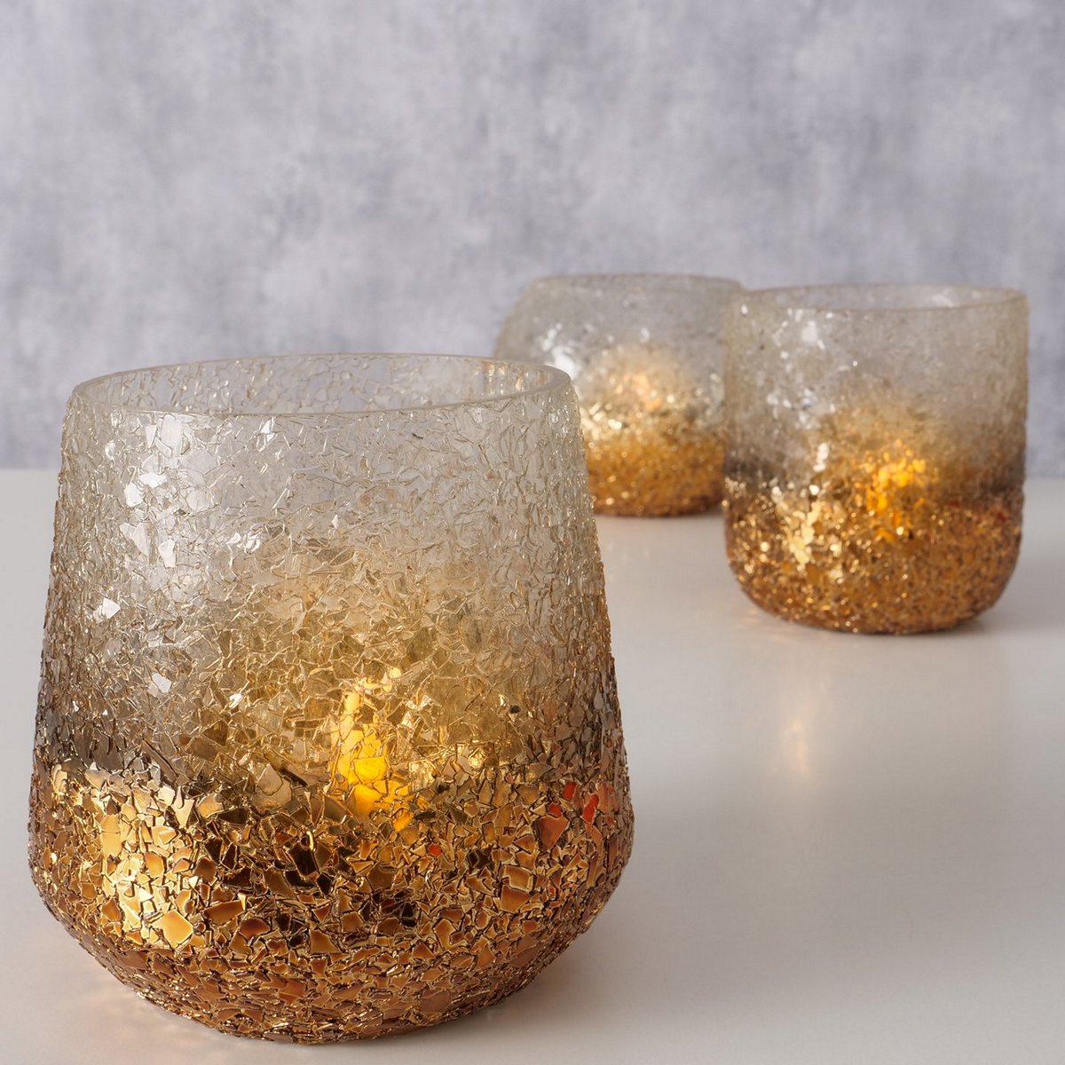 Windlight Jaenna, 3 ass., Round, H 10,5 cm, Glass lacquered, Multi-coloured glass laquered colour-mix