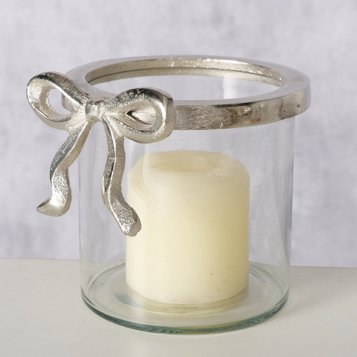 Windlight Lingka, Round, H 11,5 cm, Aluminium, Clear glass, Multi-coloured, Motif mixed materials silver