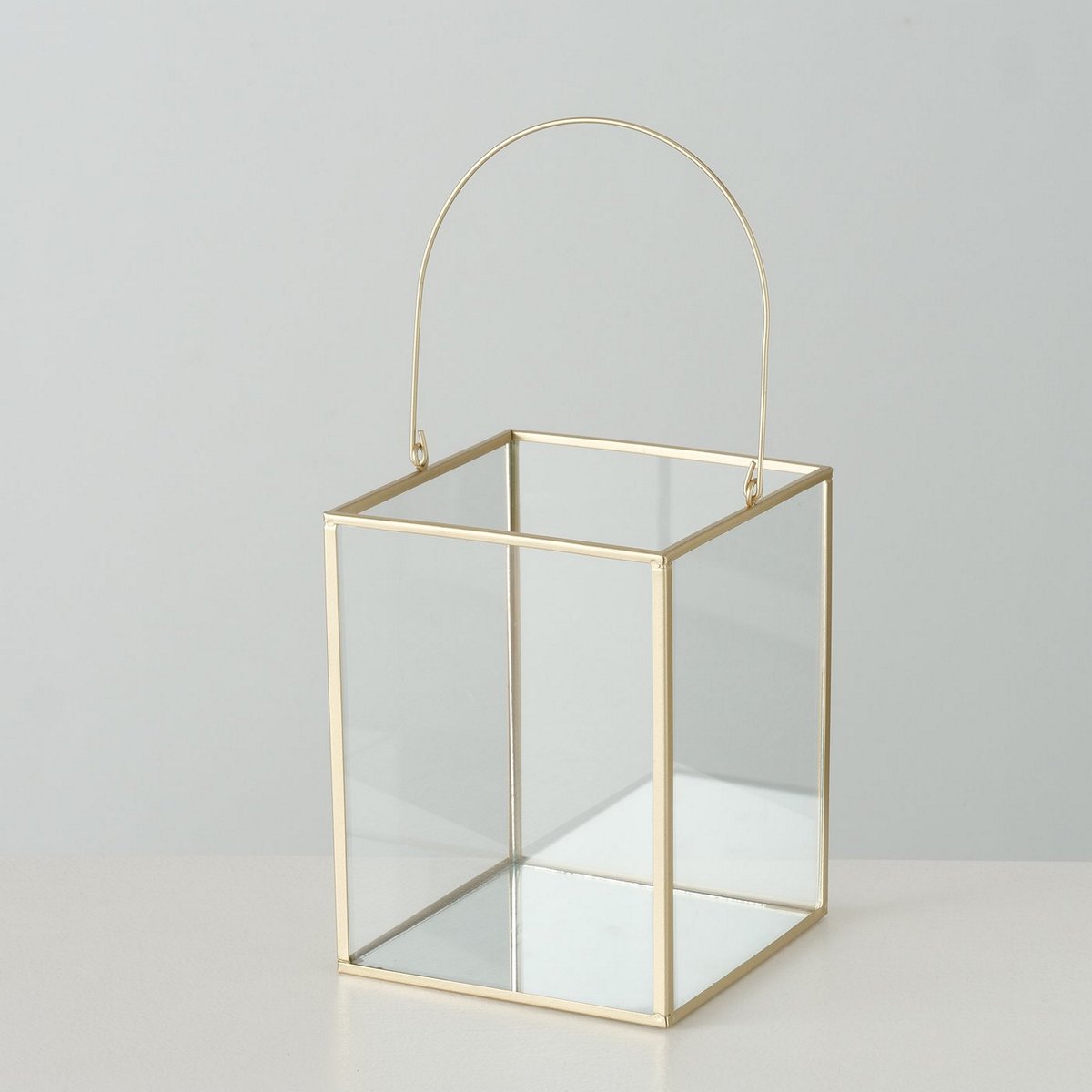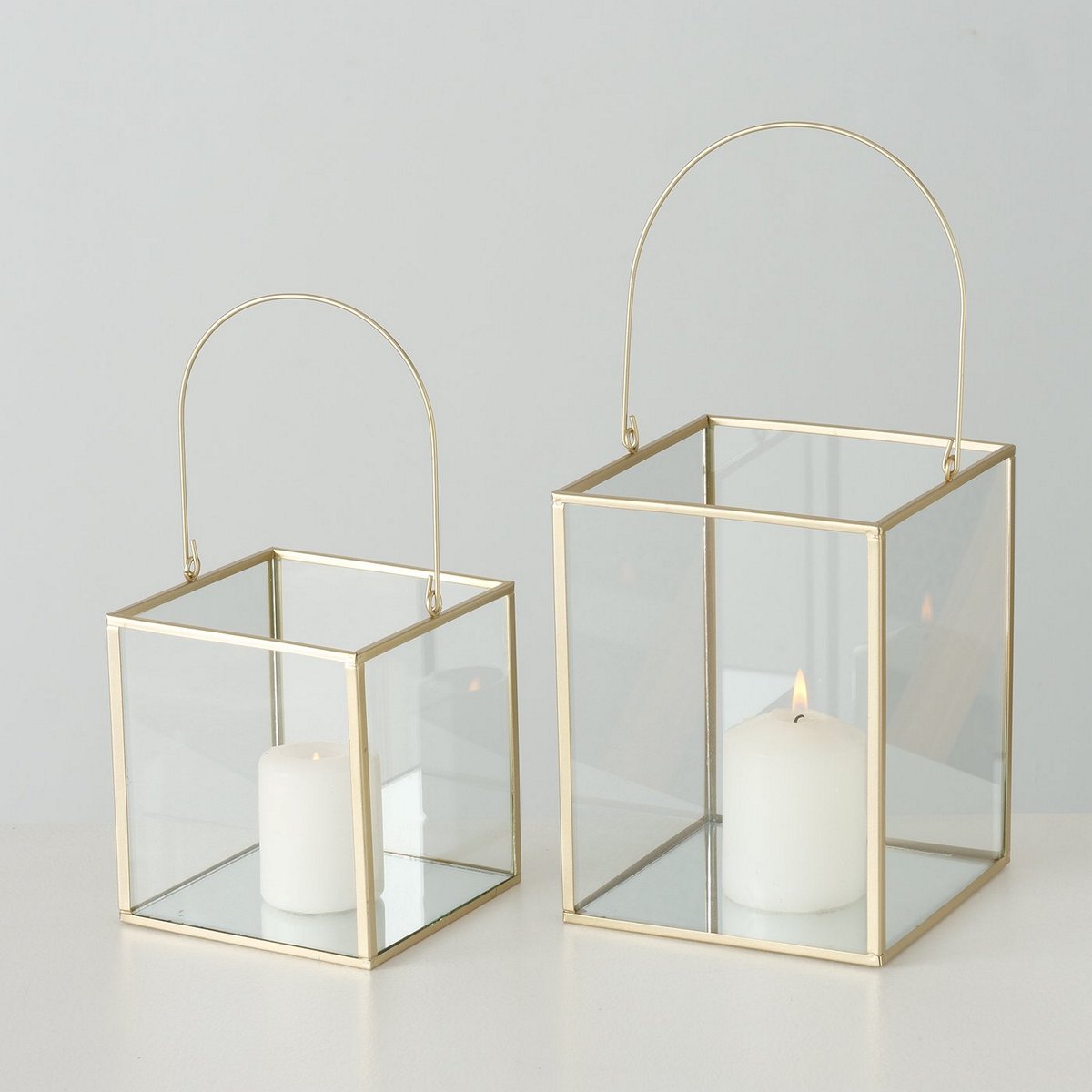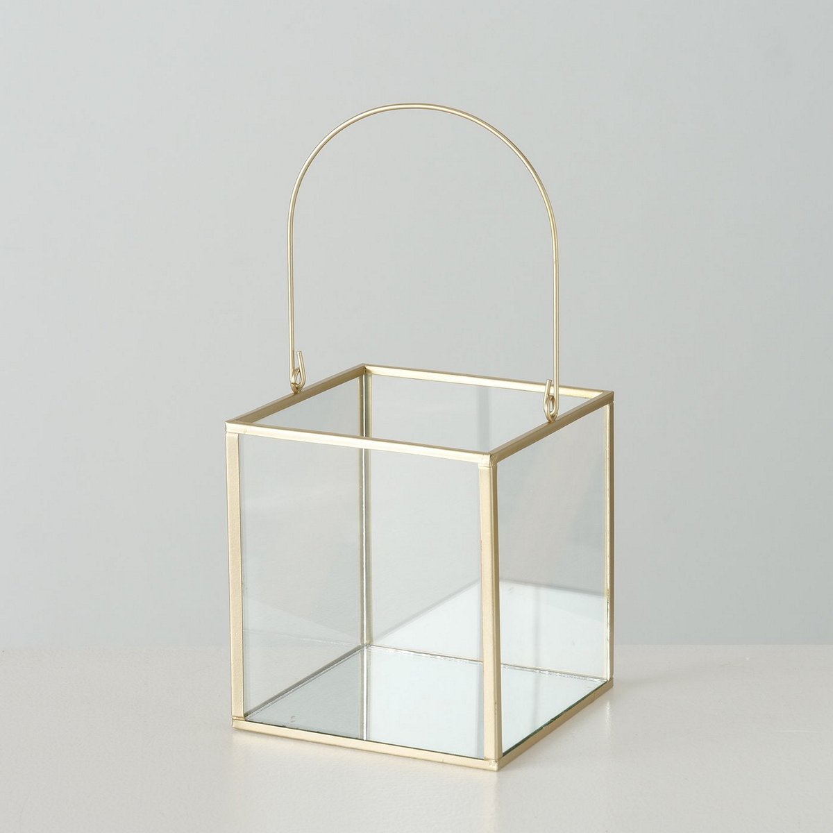 Windlight Malta, 2 p., Set 2, Square, H 14-19 cm, Iron, Single-colour iron gold