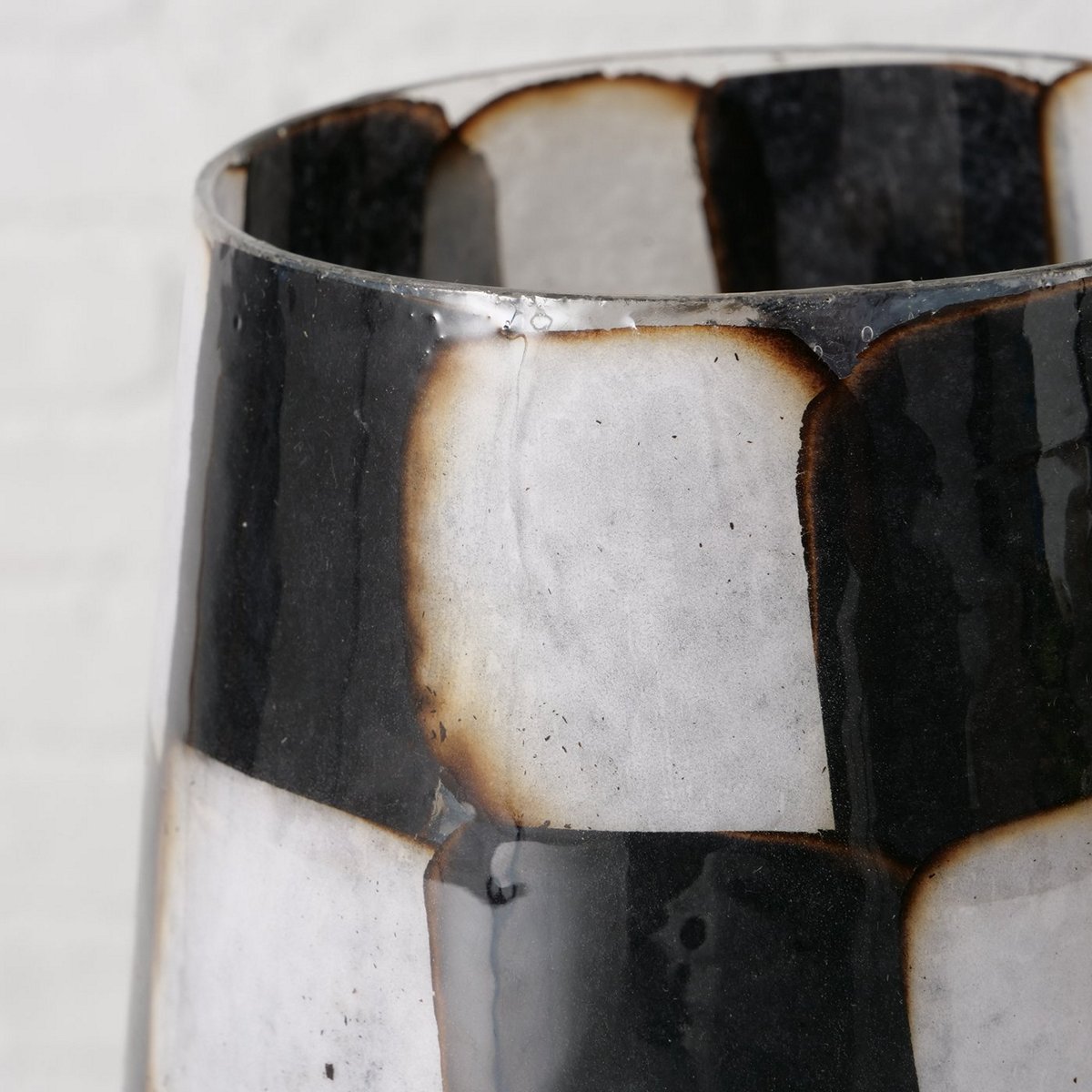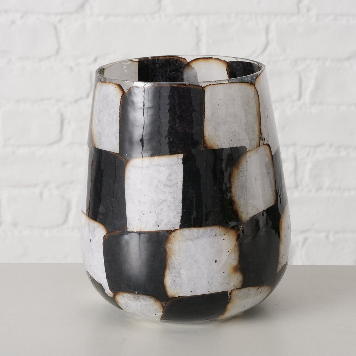 Windlight Medo, Round, H 14,5 cm, Clear glass, Multi-coloured, Checkered glass clear colour-mix