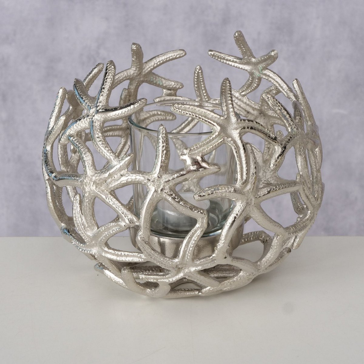 Windlight Merita, Round, H 18 cm, Alu nickle, Clear glass, Single-colour mixed materials silver