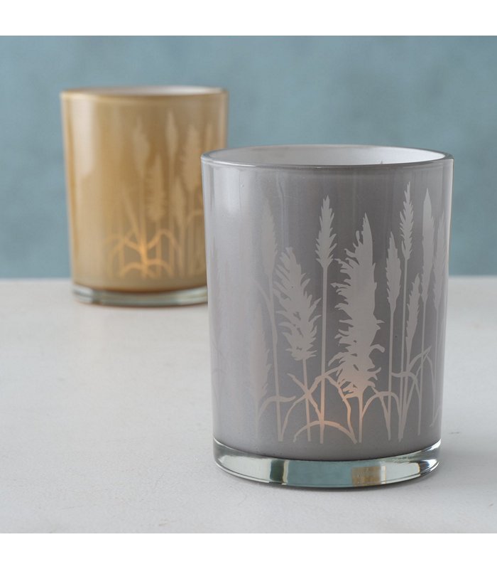 Windlight Pampas, 2 ass., D10 H12cm, Glass laquered, Multi-coloured, Floral, Beige, Light grey, White glass laquered co