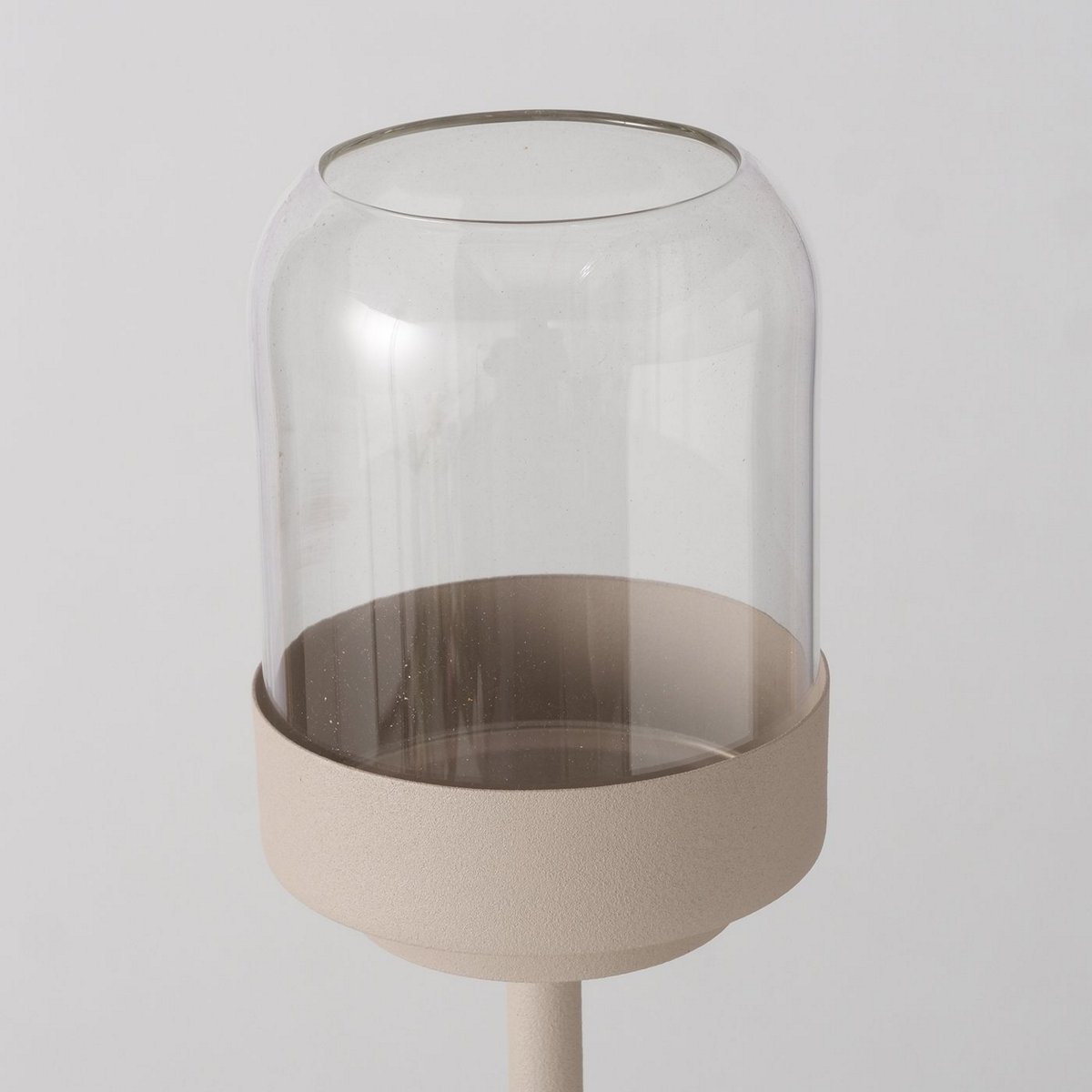 Windlight Senza, 3 p., Set 3, Round, H 28-46 cm, Iron powder coated, Single-colour iron powder coated beige