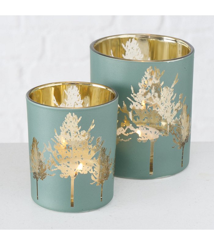 Windlight Skove, 2 p., 3 ass., Set 2, H 8-10 cm, Glass laquered, Floral, Gold, Light green glass laquered colour-mix