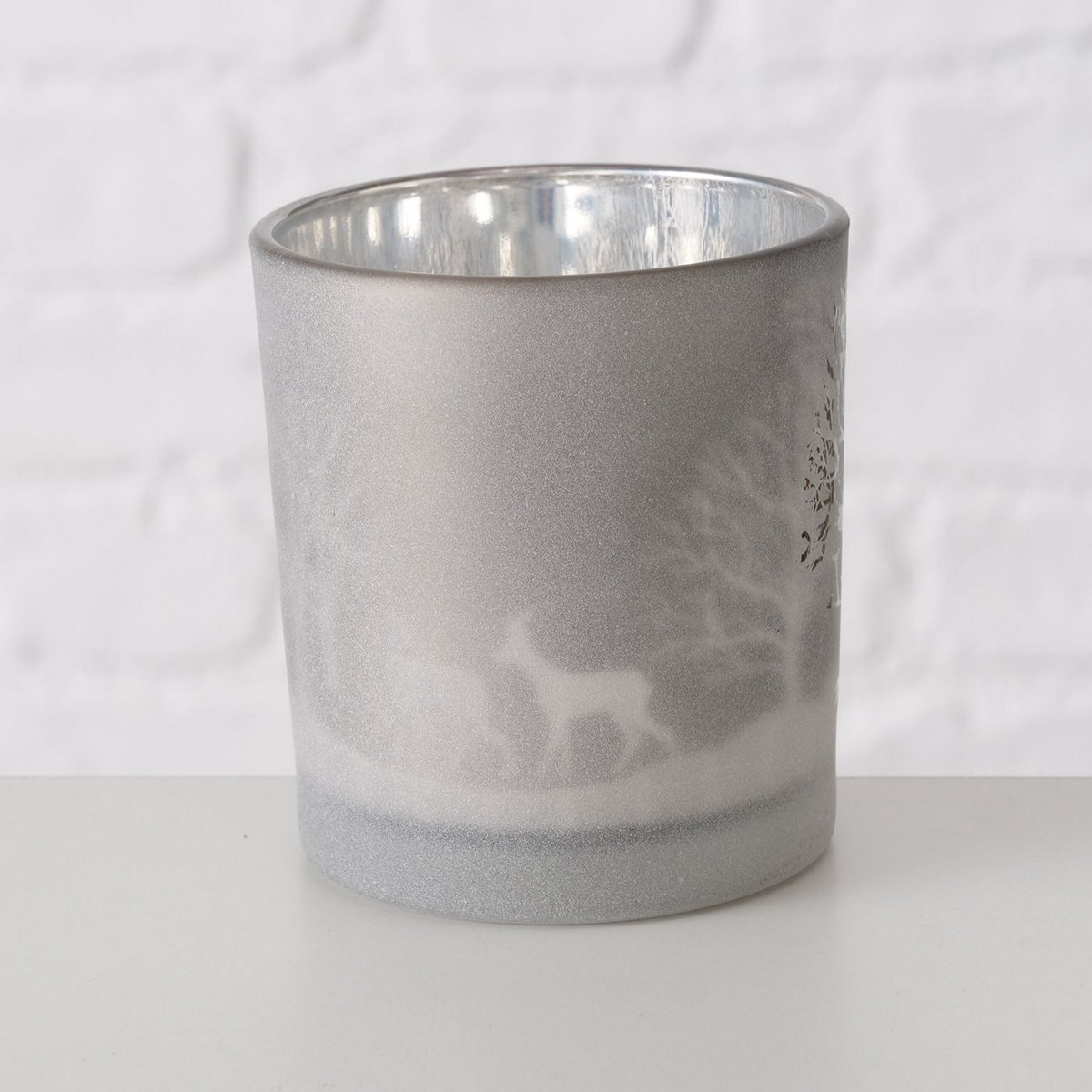 Windlight Soma, 2 p., 2 ass., Set 2, Round, H 8-10 cm, Glass, Grey, Light grey Glass colour-mix