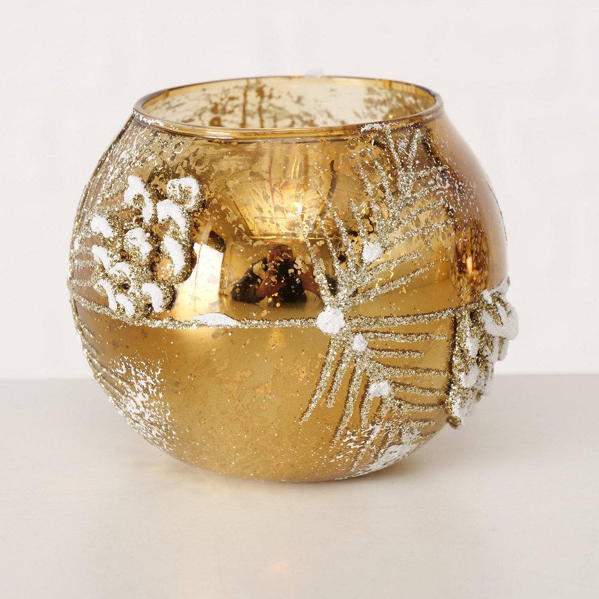 Windlight Sorino, 3 ass., Round, H 8,00 cm, Glass laquered, Brown, Dark brown, Light brown glass laquered colour-mix