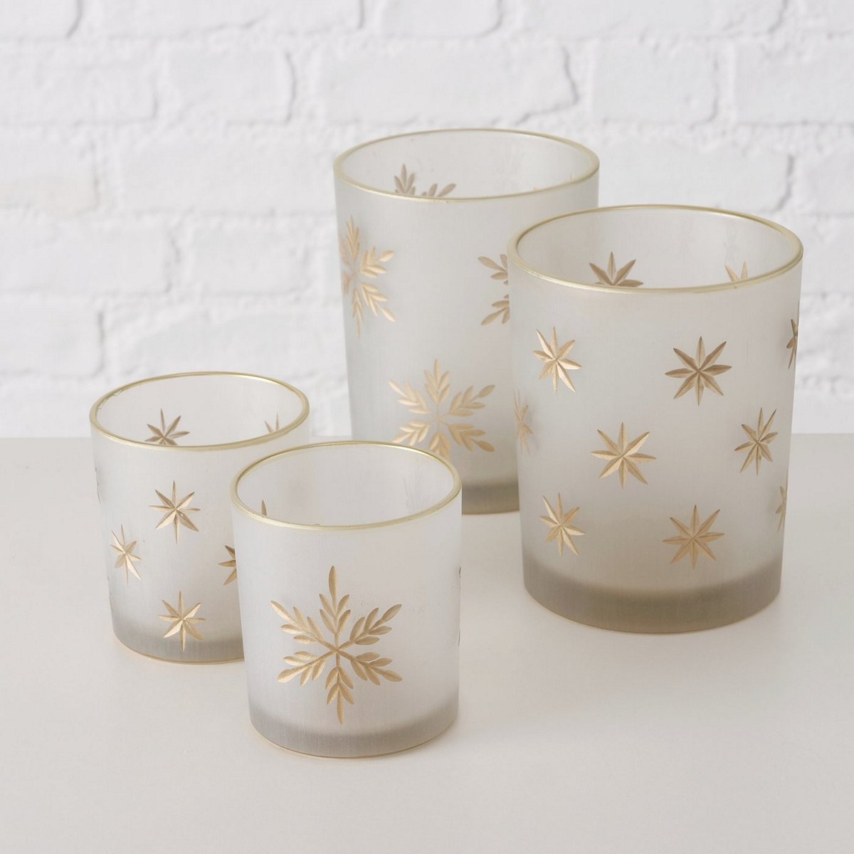 Windlight Stellina, 2 p., 2 ass., Set 2, Round, H 8-12 cm, Glass lacquered, Coloured edge, Motif, Multi-coloured glass l