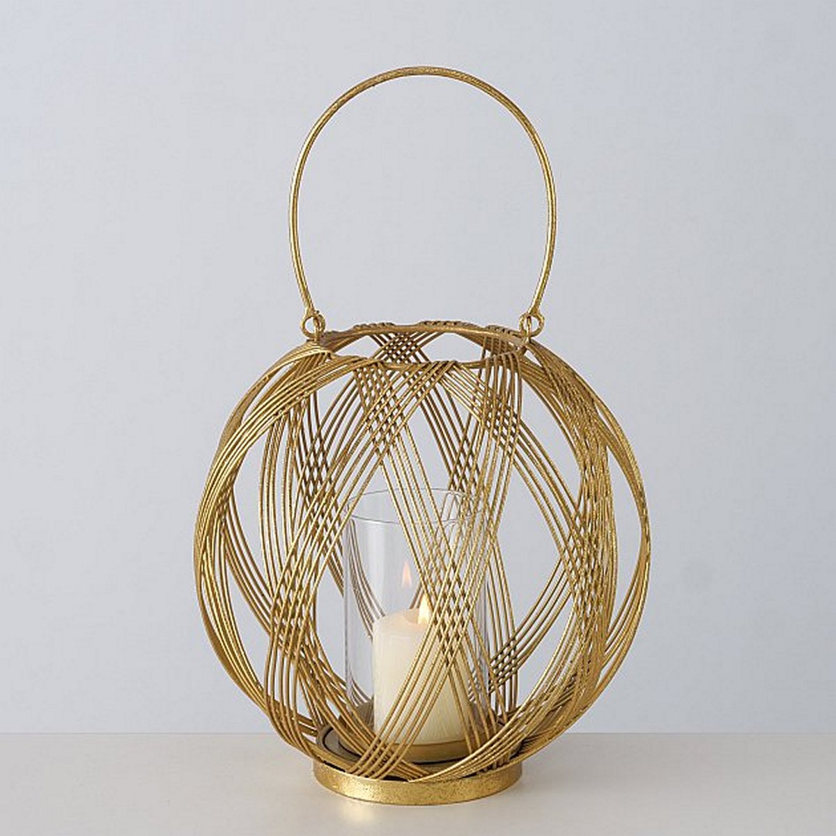 Windlight Sulana, Round, H 28,00 cm, Iron, Clear glass, Single-colour mixed materials gold