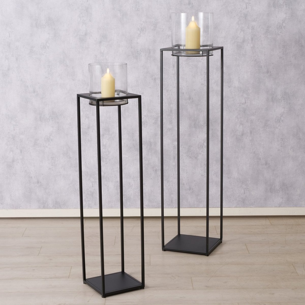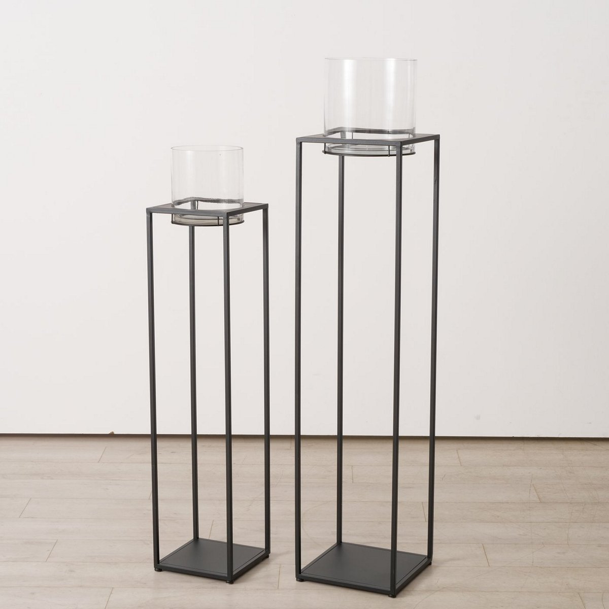Windlight Victory, 2 p., Set 2, Round, Square, H 121-146 cm, Iron powder coated, Clear glass, Single-colour mixed materi