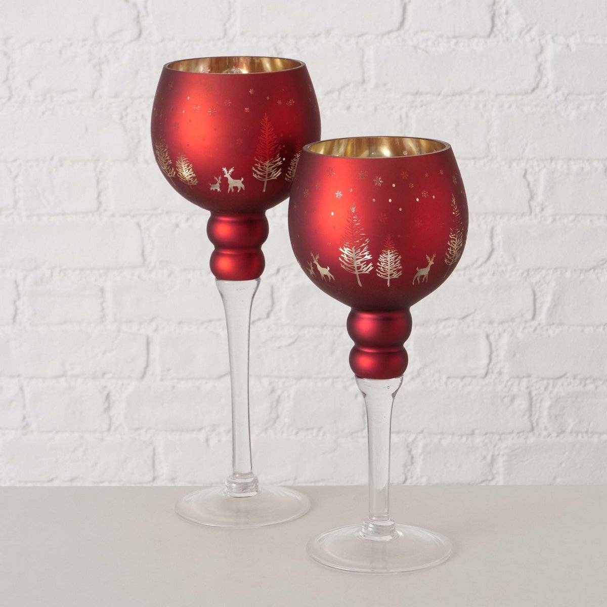 HomeSHOPCHRISTMAS COLLECTIONWindLights Windlight Winty, 2 p., Set 2, Ball, Round, H 30-35 cm, Glass lacquered, Single-colour, Motif glass laquered red