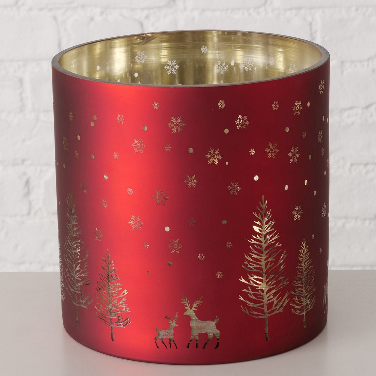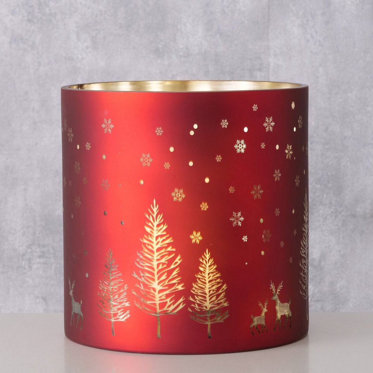 Windlight Winty, Round, H 20 cm, Glass lacquered, Multi-coloured glass laquered red