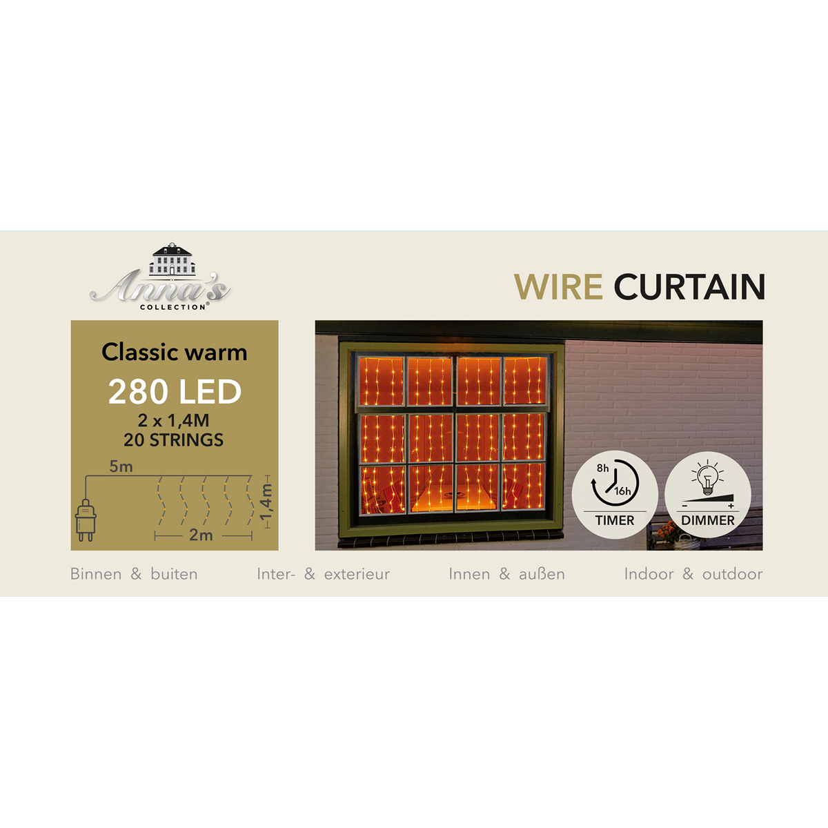 WIRE CURTAIN ICICLE 280 LED CLASSIC WARM-TRANSPARENT CABLE (2,0X1,4M) [20 STRINGS]
