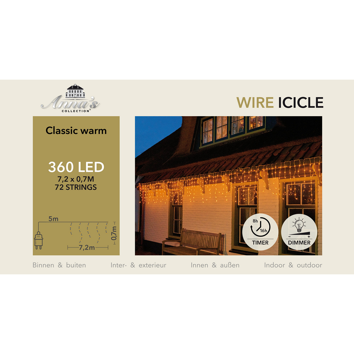 WIRE CURTAIN ICICLE 360 LED CLASSIC WARM-TRANSPARENT CABLE (7,2X0,7M) [72 STRINGS]